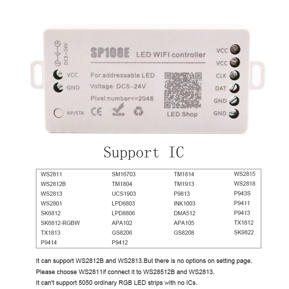 Светодиодная лента SP108E, Wi-Fi, управление, ler WS2811, WS2812B, WS2813, WS2815, SK6812 и т. д., светодиодный модуль, интеллектуальное приложение, беспроводное управление DC5-24V
