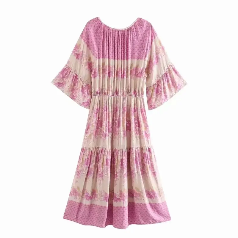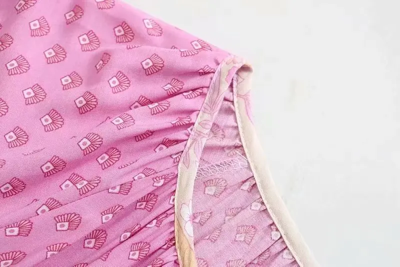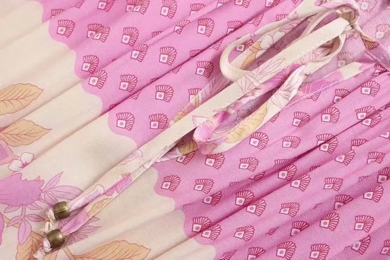 Платье в стиле бохо из вискозы и хлопка, розовое Макси-платье с цве...