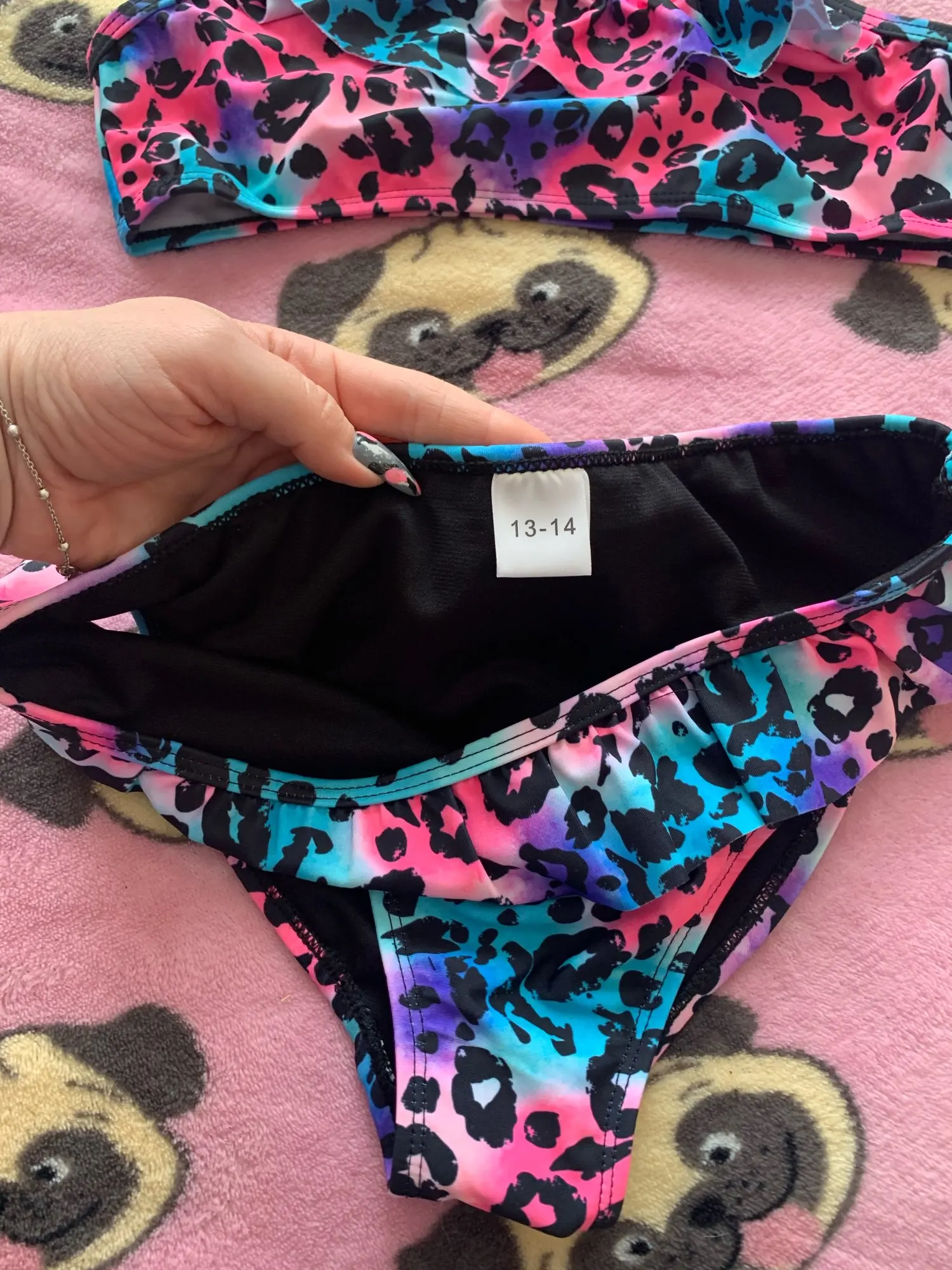На ребёнка 12 лет рост 146 вес 40 кг. Трусики впритык. Топ нормально но без запаса совсем. Если ребёнок худенький то на 12 будет нормально и поменьше размер думаю. Купальник не такой яркий. Буд-то уже немно выгорил.