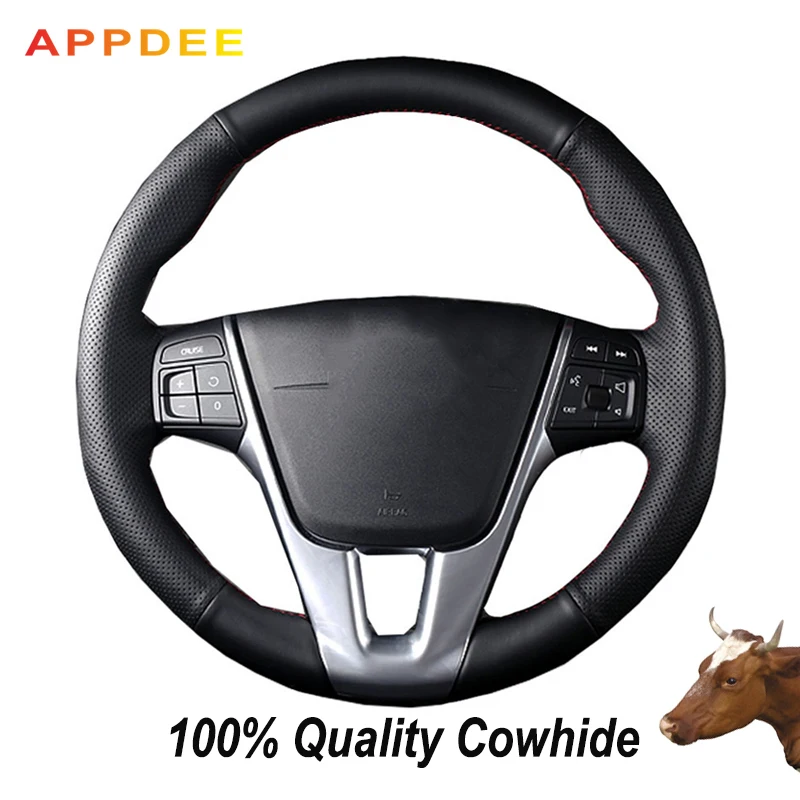 Сшитая вручную черная оплетка рулевого колеса из натуральной кожи для Volvo S60 V40 V60 V70 2014 XC60