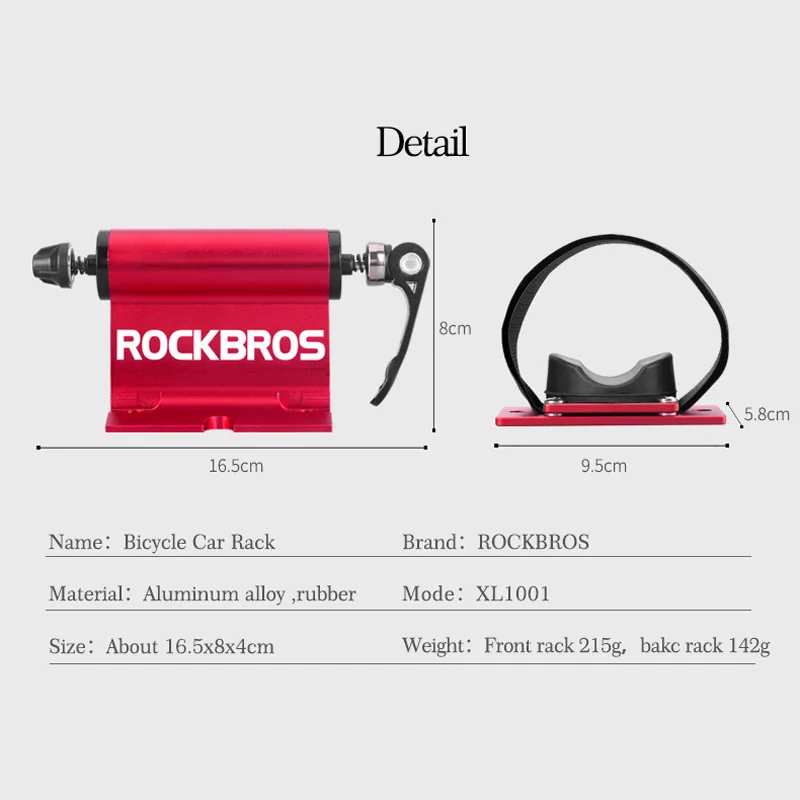Название: багажник на крышу велосипедаБренд: ROCKBROSМатериал: алюминиевый сплав, резинаРежим: XL1001Размеры: около 16,5*8*4 смВес: передняя стойка 215 г, задняя стойка 142 гСовет: автомобиль с багажной стойкой, затем можно использовать его.Размещение на транспортном средстве: слева, справа, спереди, сзади