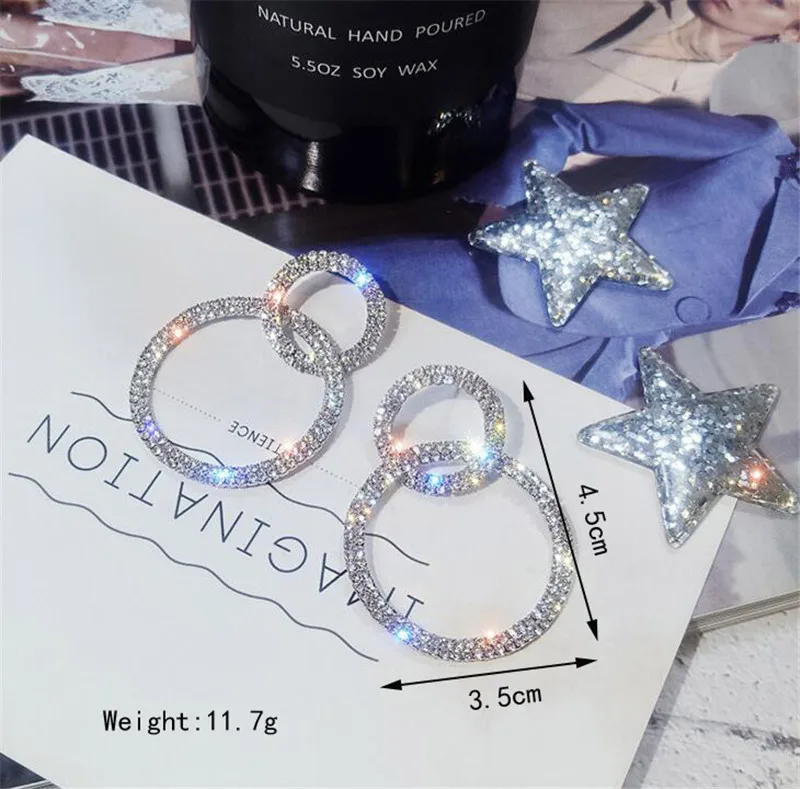 Большие и маленькие длинные висячие серьги-кольца корейские циркони...