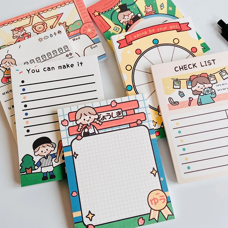Блокнот для заметок SIXONE, 50 листов, с рисунком милой девушки, для заметок, для учеников, кавайный блокнот для списка дел, дневник, канцелярские принадлежности для офиса и школы