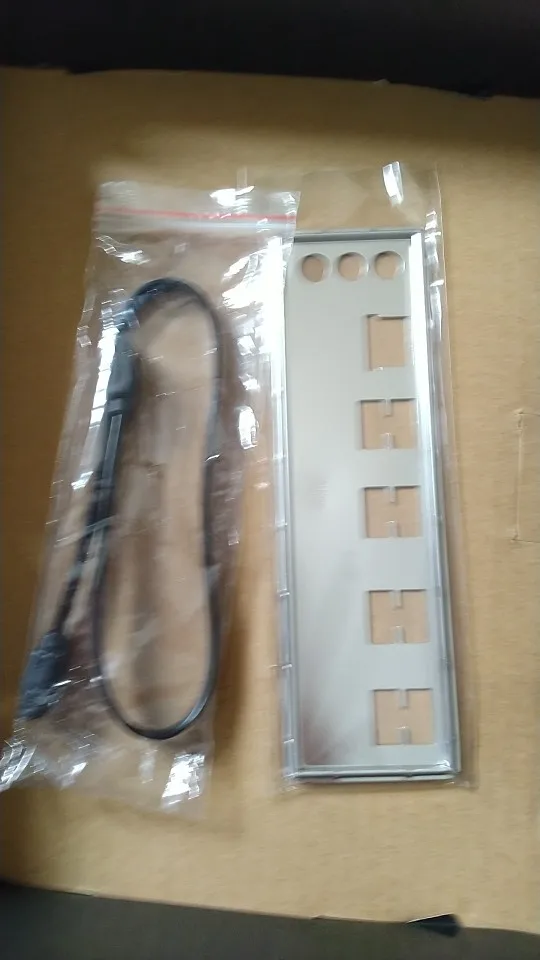 Пришло в Челябинск меньше, чем за месяц. Упаковано в обычный пакет без дополнительной защиты. В пакете коробка почему-то не от Машиниста в которой лежит уже непосредственно материнская плата на в антистатическом пакете на подложке из вспененного полиэтилена. В комплекте находится заглушка в корпус и один сата-кабель