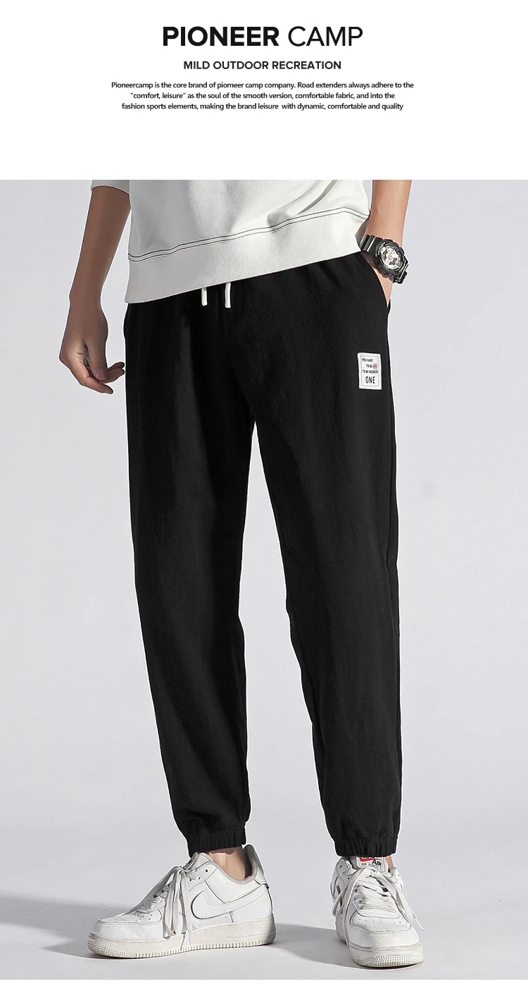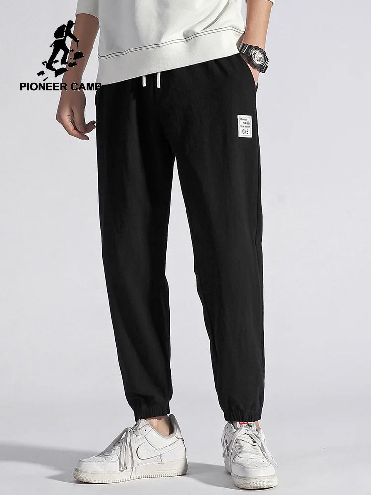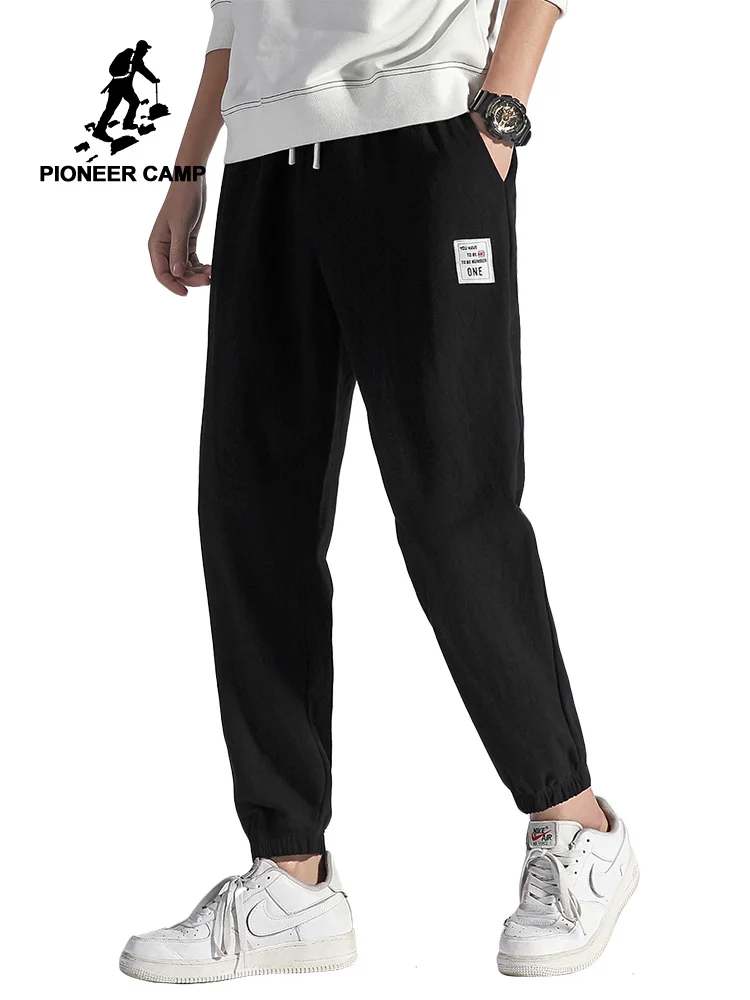 Мужские повседневные брюки Pioneer Camp, летние тонкие свободные брюки из 100% хлопка черного, зеленого, синего, серого цвета, AXX0105008