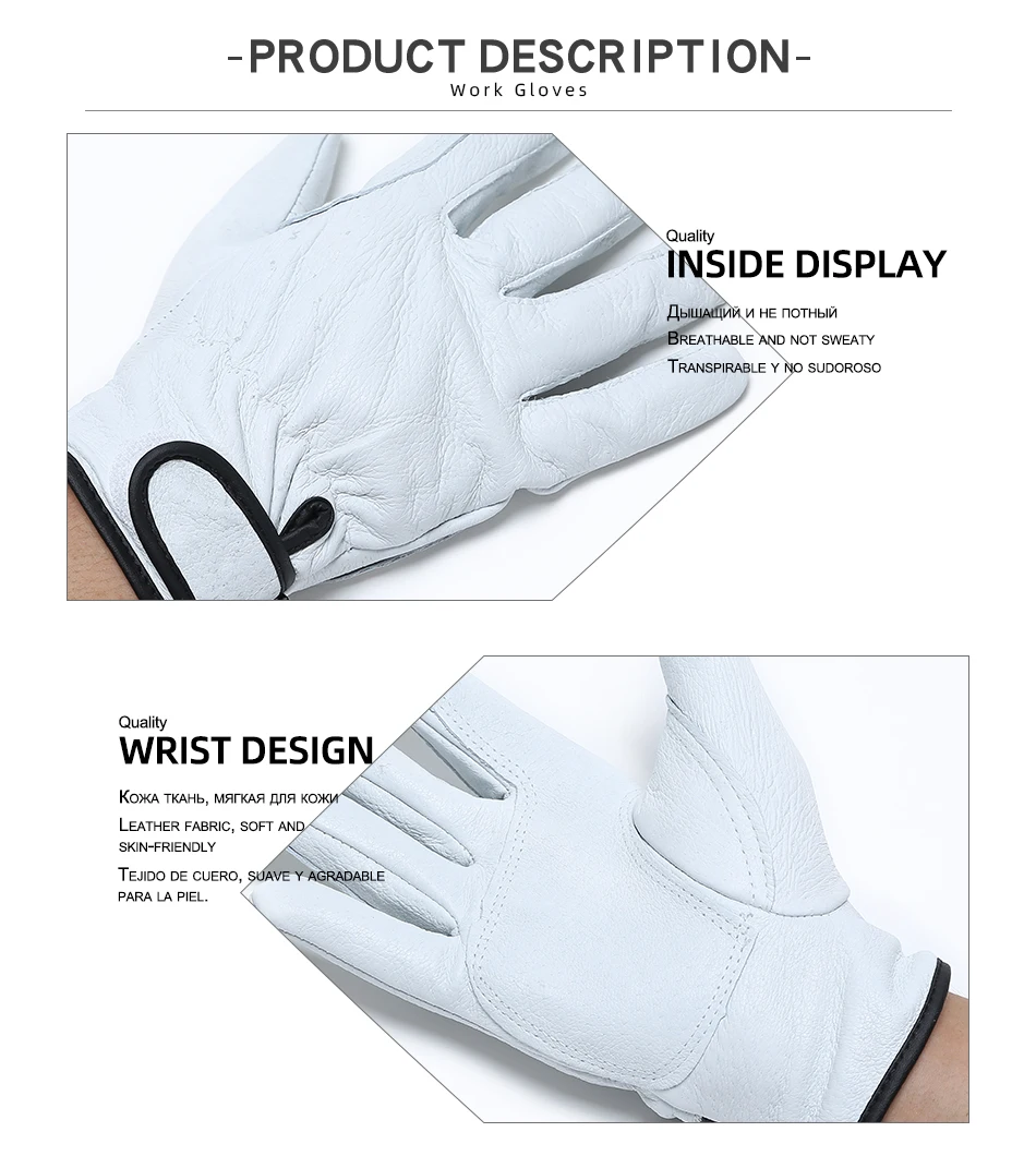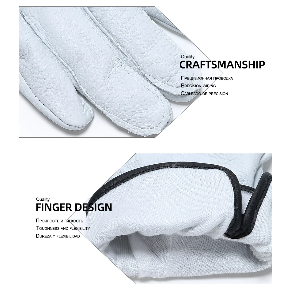 Изготовлено из высококачественной кожи средней толщины, мягкой и эластичной. Ладонь обладает повышенной износостойкостью, а эластичный ремешок может держать пыль и мусор внутри перчаток, делая перчатку более близкой к руке. Дизайн GON cut и KEYSTON thumb-перчатки Gunn cut обладают отличной прочностью и гибкостью, потому что шов начинается с ладони. Уменьшите напряжение в шве, и наш дизайн большого пальца Keystone для изготовления перчаток. Сделайте ваши руки более гибкими и двигайтесь более свободно. Из-за естественного дышащего материала он удобно впитывает пот.