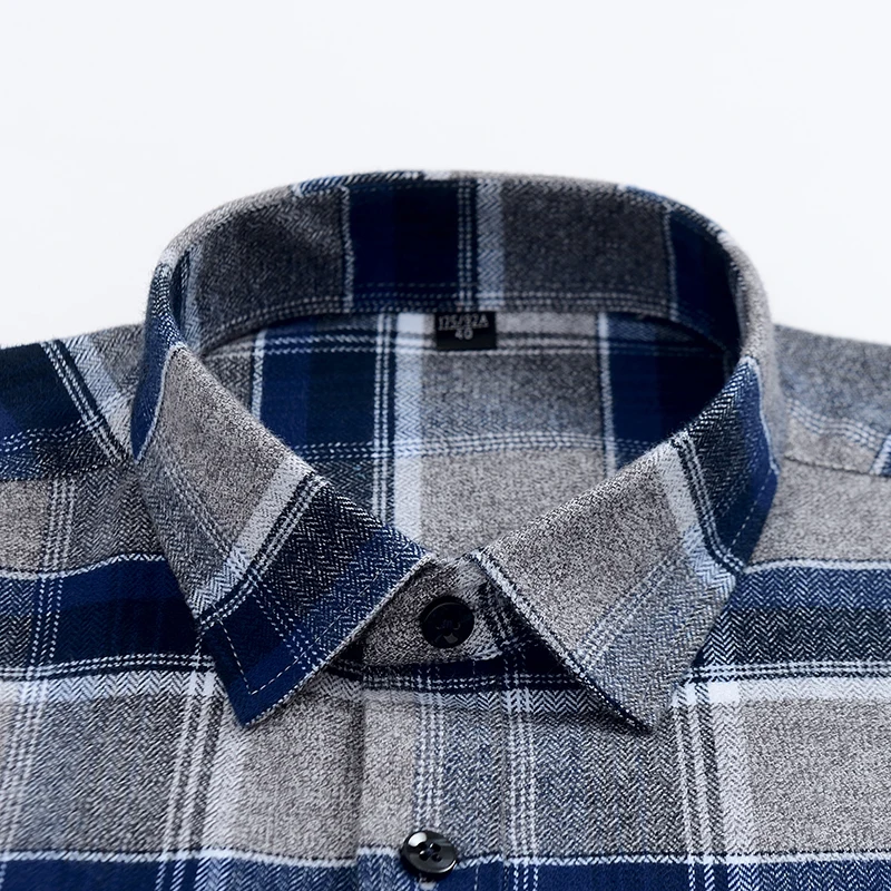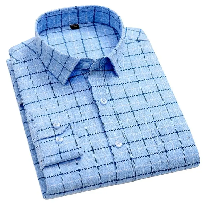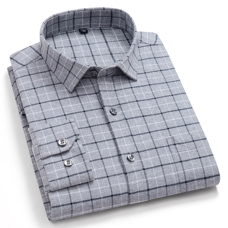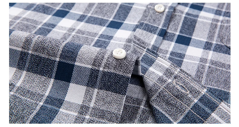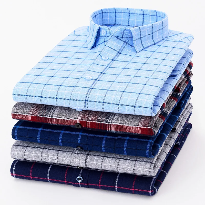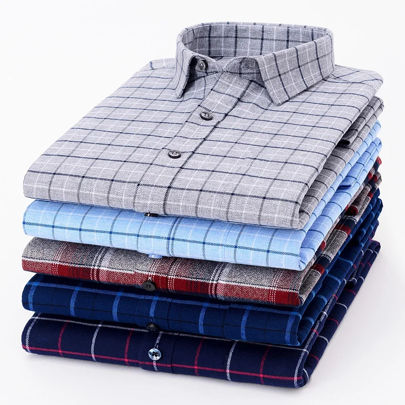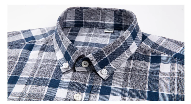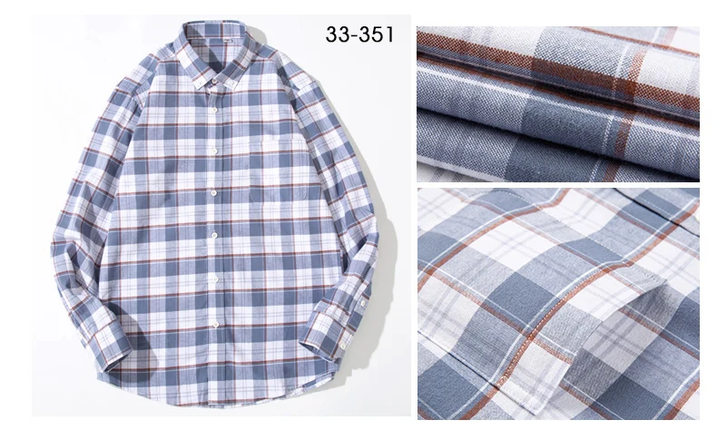 Светильник, синяя клетчатая рубашка для мужчин, 100% хлопок, шлифовальная ткань, проверенная Повседневная Рабочая деловая Мужская рубашка, плотная мягкая Осенняя Новинка