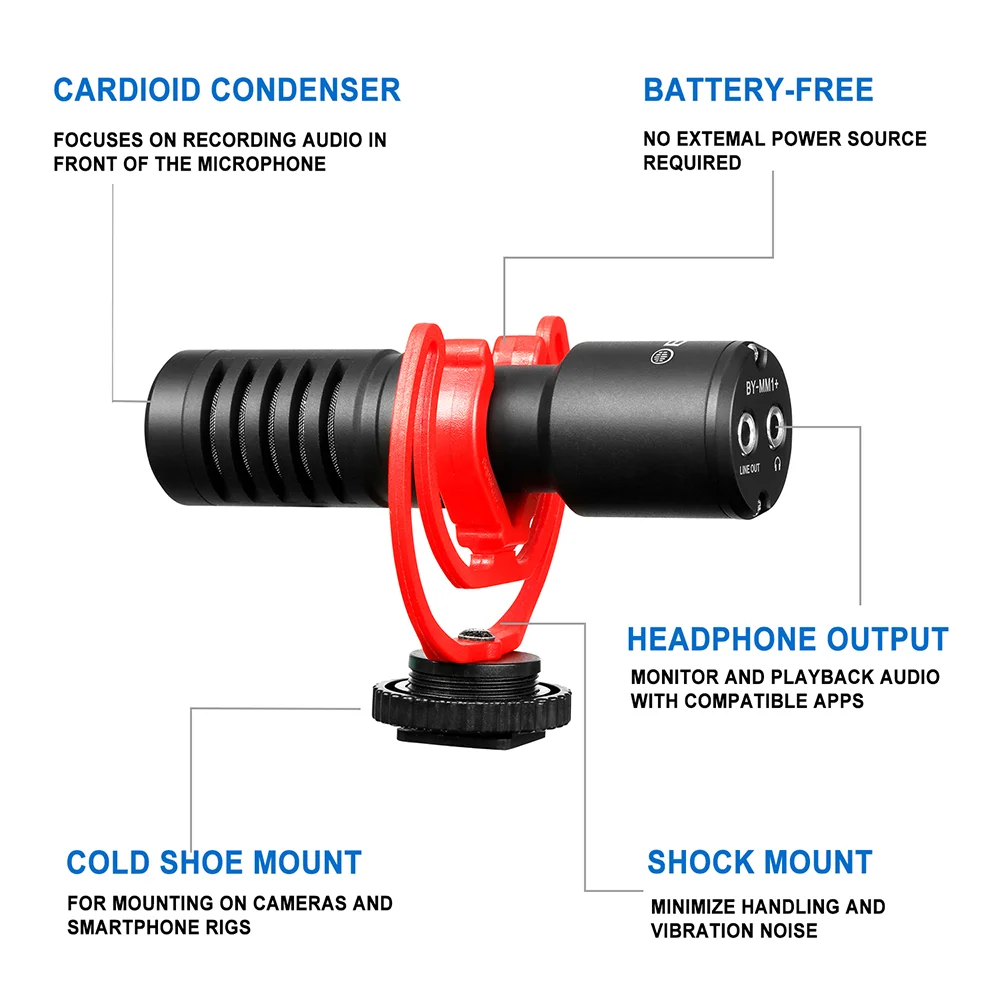 BOYA BY-MM1 Shotgun видеомикрофон, Универсальный микрофон для записи, микрофон для цифровой зеркальной камеры, смартфонов iPhone, Android, Mac, планшетов