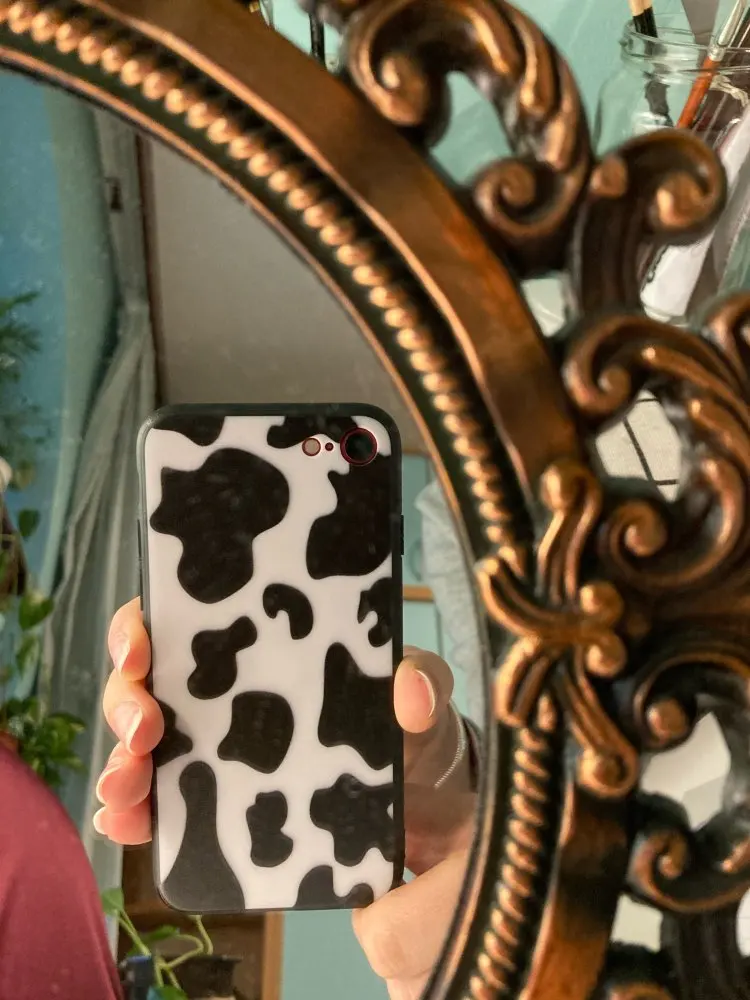 Чехол для телефона cowprint выглядит точно так же, как на картинке, сказал, что он будет уменьшен до размера и точного рисунка, очень милый