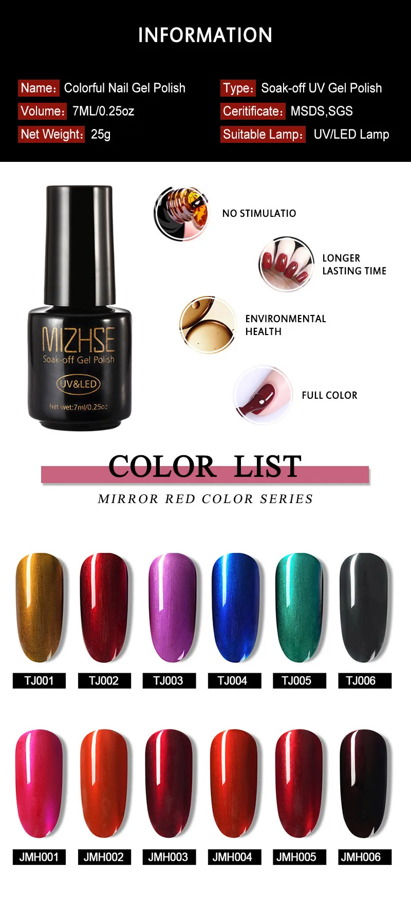 MIZHSE 7 мл УФ-гель для ногтей, зеркальный титановый красный Гель-лак для ногтей, металлический цветной лак для ногтей, УФ-Гель-лак, нужно Серебряное основание