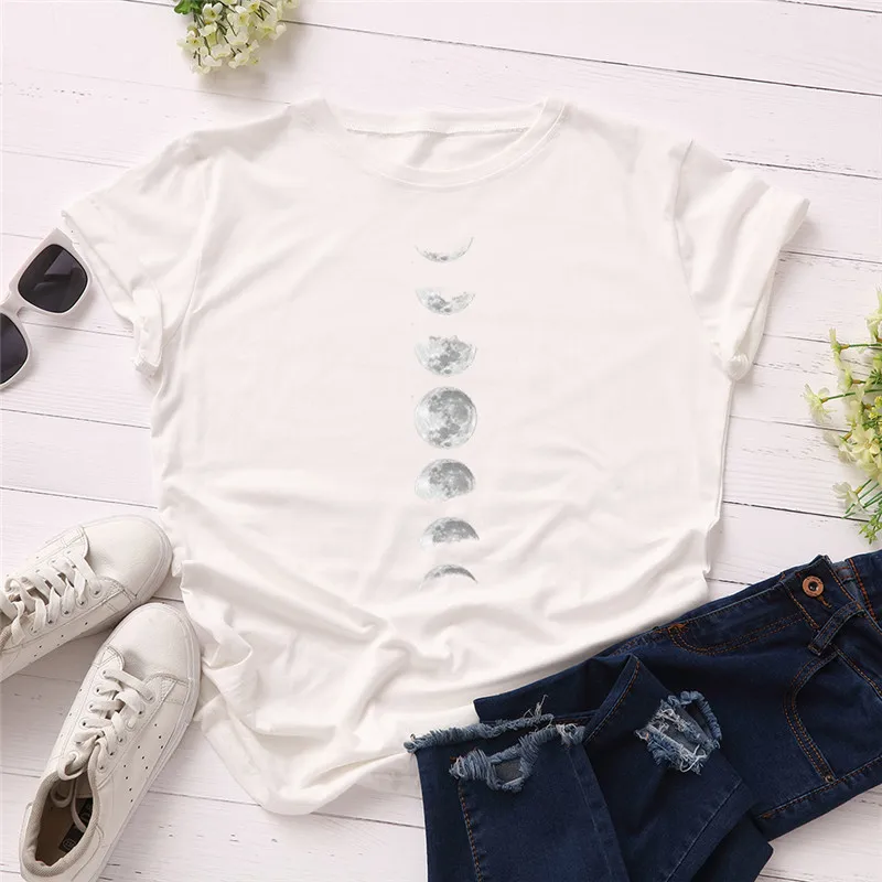 Новый Moon планета футболка с принтом для женщин Harajuku футболки забавные свободного кроя с короткими рукавами в винтажном стиле; Сезон лето футболка в готическом стиле, кепки, кепки в стиле размера плюс, топы