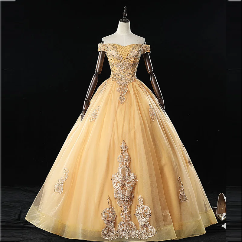Женское бальное платье Quinceanera, бальное платье с открытыми плечами и аппликацией из тюля, вечерние платья знаменитостей, 15 Anos