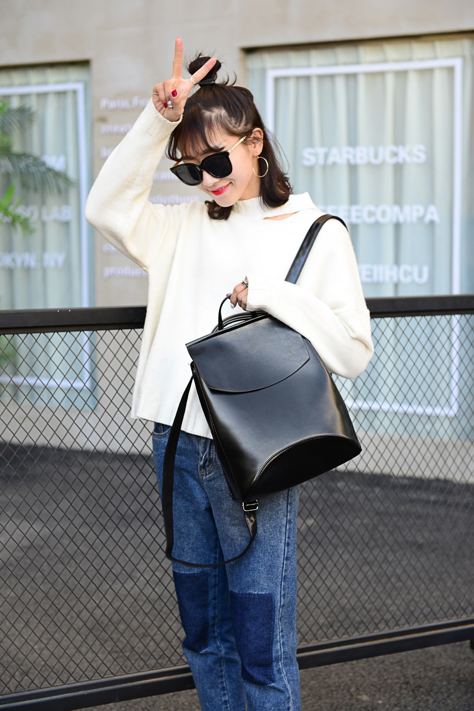 Замечательный универсальный рюкзачок, можно носить сумкой на плече. Сшит аккуратно, лямки внутри укреплены тканью очень хорошо, так как в рюкзаках которые у меня были ранее , в этих местах всегда трескалось. Давольно объемный , хотя по виду не скажешь. Запаха нет, упакован хорошо, пришёл быстро! Спасибо продавцу, отличная стильная вещица.