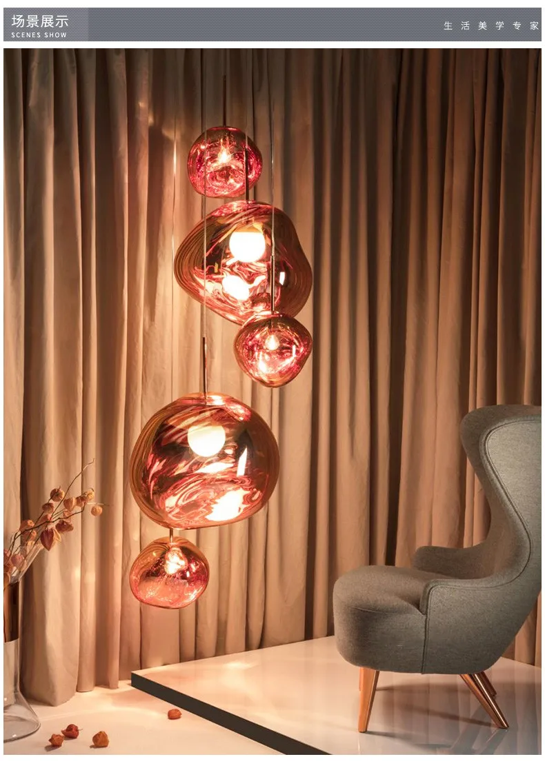 Скандинавский LED акриловый канделябр расплавленный Лава шар подвесной светильник подвесные лампы для спальни кухни канделябр Золотой медный акриловый художественный свет
