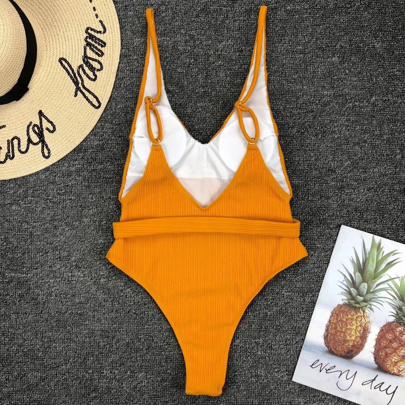 Сексуальный купальник, Женский однотонный желтый слитный купальник с пуш-ап и пряжкой, монокини, купальный костюм с перекрестными пряжками, пляжная одежда, 2021
