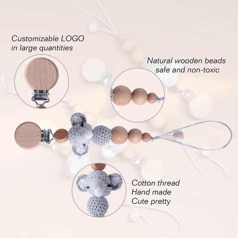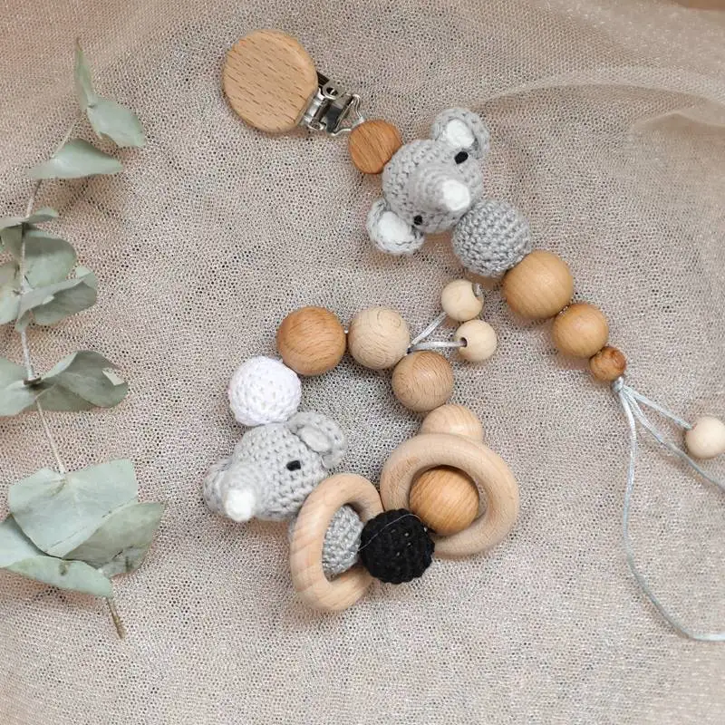 1 шт. детский деревянный Прорезыватель для зубов с зажимом для соски цепочка с подвеской в виде слона бусы с крючком копыта для грызунов зажим для детского душа подарок для детей игрушки