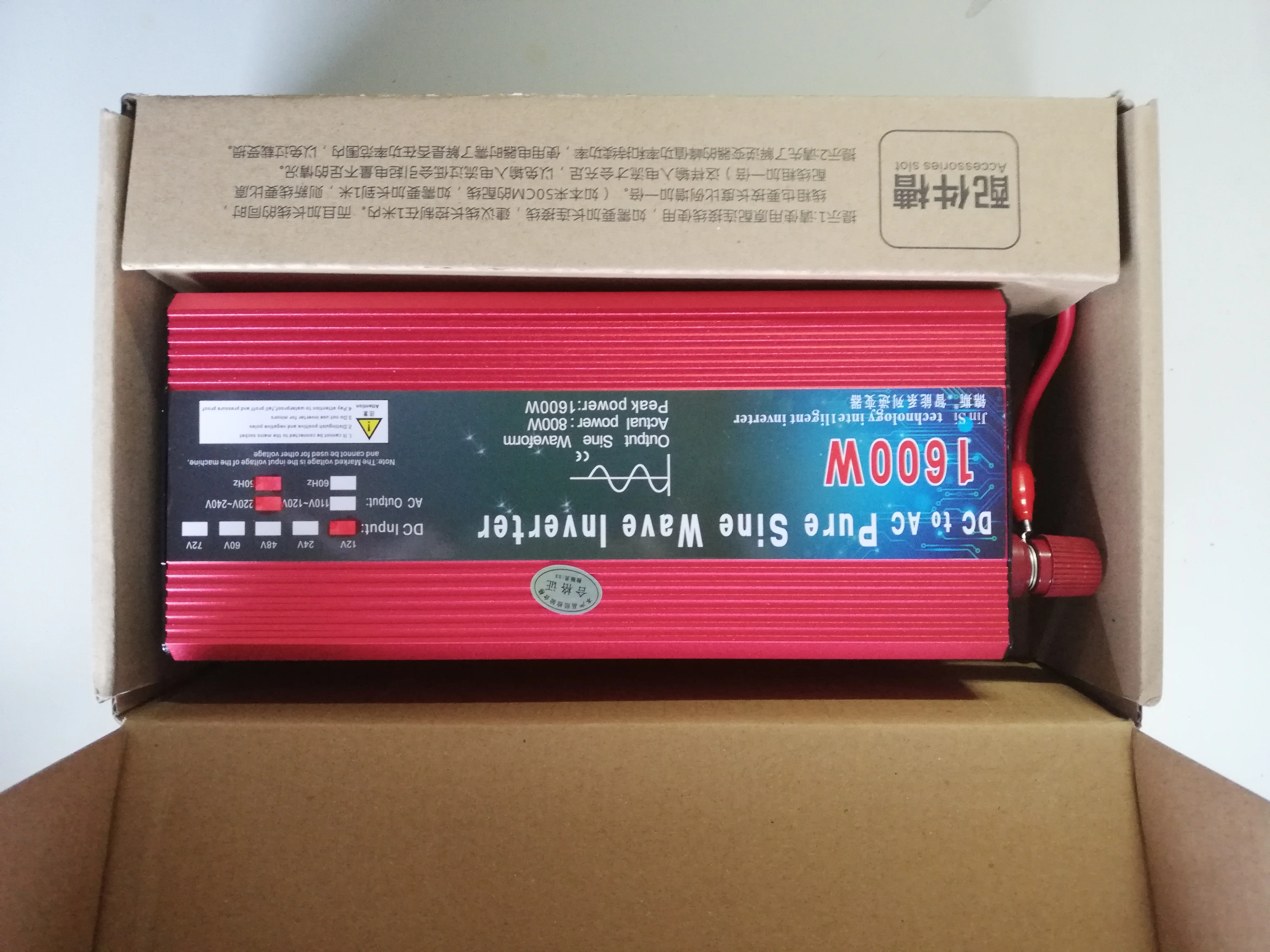 Доставка в срок,хорошо упакован на.Попробовали включать диодный фонарь 50w работает,потом решили пойти ещё дальше и подцепили 1800W пылесос,тоже работает,но провода греется,лучше заменить на более мощные.