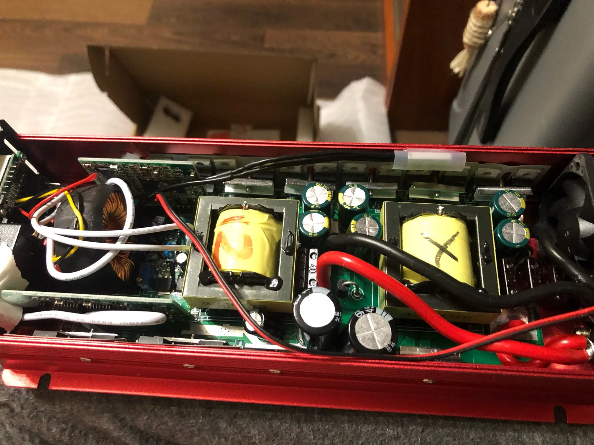 Very fast delivery!!! Good quality. Five stars!!! Доставка через Пятёрку огонь. Будто из России. Упаковка в норме. В целое. Держит честный киловатт. Полтора часа - полет нормальный. Внутрянка вполне достойная. Два преобразователя в параллель. Трансы на вид по киловатту каждый. Пайка аккуратная, без соплей. В низу трудятся шесть пар 1404 если кому интересно. Куллер через биметалл на радиаторе. Подрывается на 50-55 градусах. Короче - норм. Брать можно.
