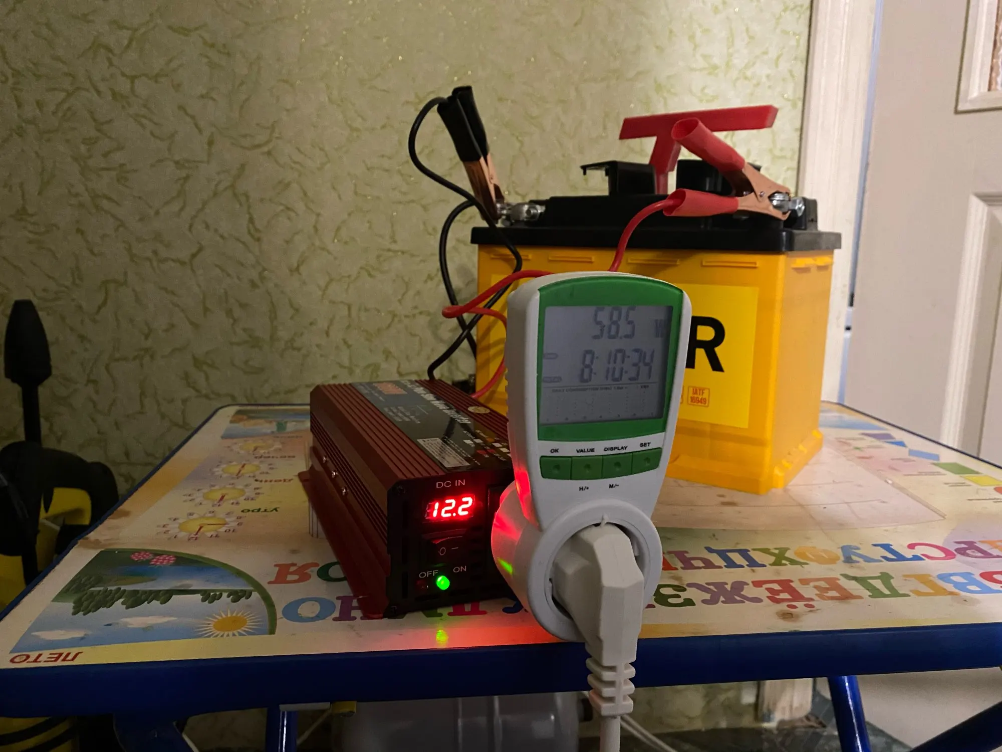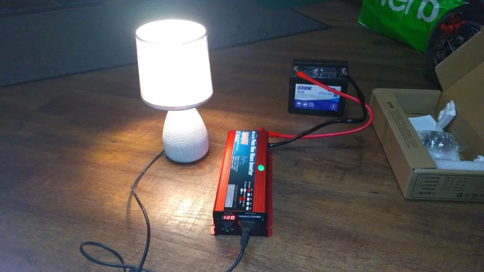 Брал за 5500 рублей 11.11 с купонами. Пришла посылка в адекватные сроки, но особо не спешила. Проверил на лампе, зарядке для электросамоката, перфораторе 1кВт - все легко тянет от мотоциклетного аккумулятора. При снижении входящего напряжения под нагрузкой до 10В срабатывает защита и инвертер отключает потребителей. После отключения напряжение восстановилось до 11,5В, так что за аккумулятор можно не волноваться. В комплекте клеммы и два добротных, но коротких провода. Создается ощущение хорошей и надежной вещи. Продавца и товар рекомендую.
