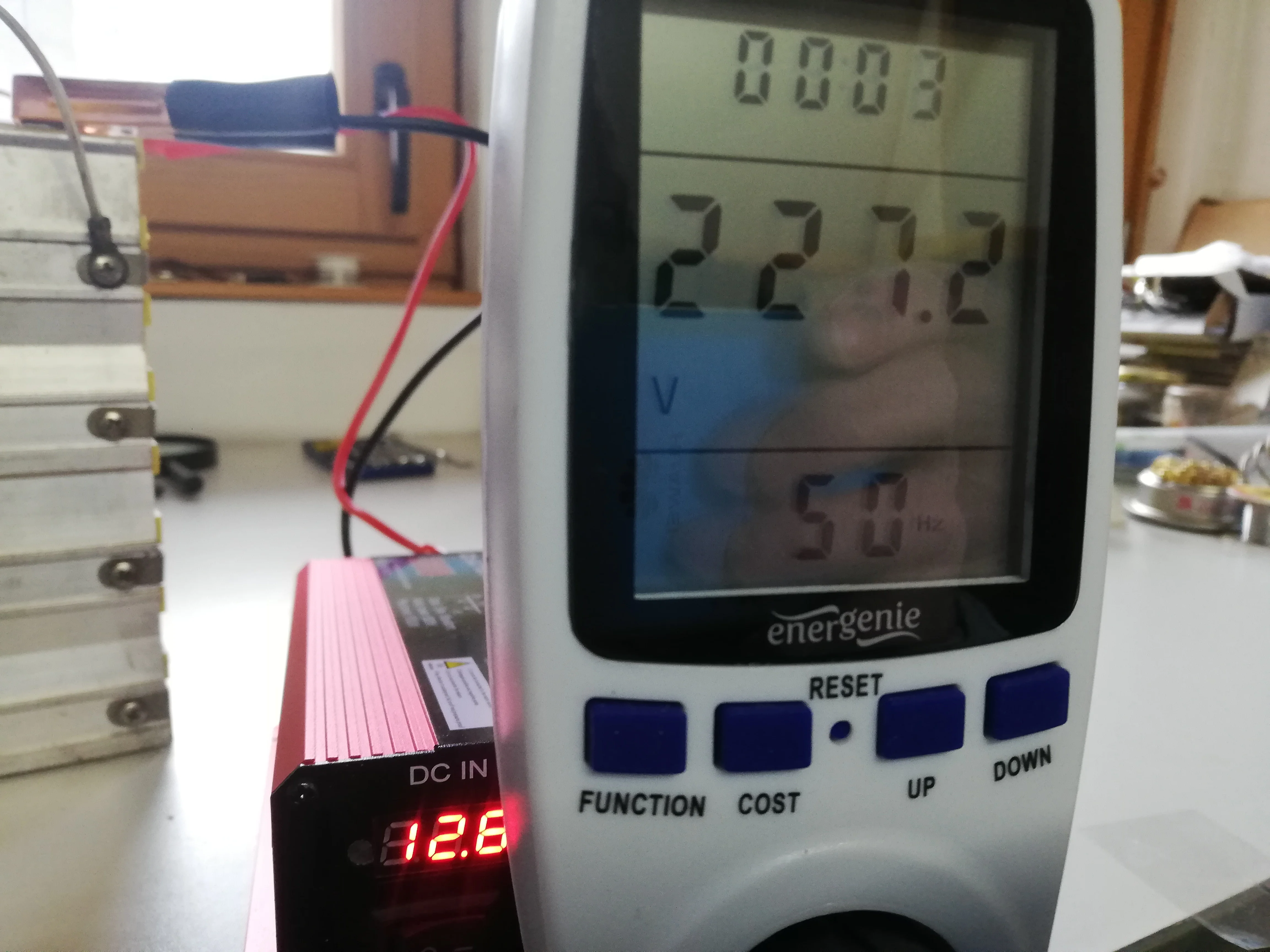 Инвертор кажется довольно легким для алюминиевого корпуса. Тянет 0,8а при включении без подключения устройства с входом в 12,4 в. Протестировано с помощью орбитального шлифовального станка Makita мощностью 310 Вт. Отлично работает! Это все, что мне нужно знать!