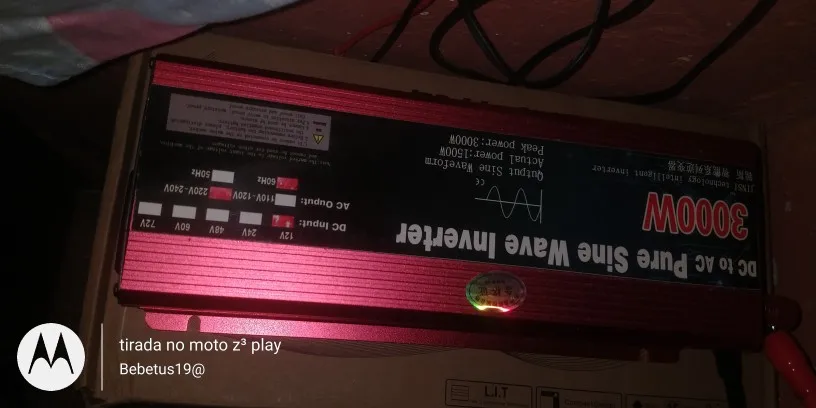 Осуществленные испытания с шайбой 16кг, холодильник Eletrolux 16кг ТВ 55-дюймовый микроволновая печь 1200 Вт и работа, удивлен инвертором очень хорошо, теперь мы видим долговечность, но определенно является лучшим значением инверторов номинальной мощности 1500 Вт и чистой синусоидальной волны, очень стоит того, что мой инвертор 3000 Вт 24В постоянного тока для 110ac
