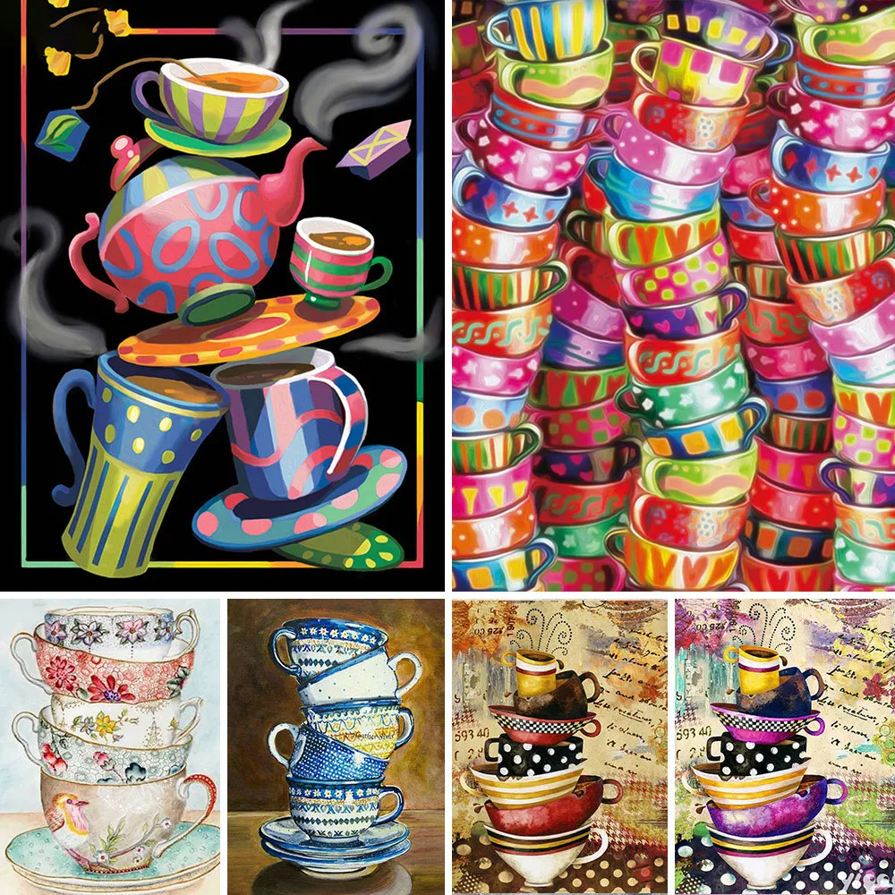 Алмазная вышивка 5d сделай сам, цветная кофейная чашка, Мультяшные круглые наборы для алмазной живописи, холст, вышивка крестиком, подарочное украшение для дома