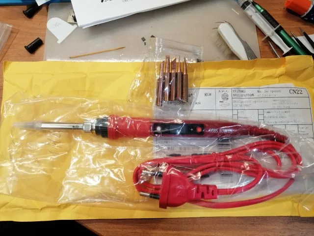 Паяльник доставил курьер, прямо домой. У меня такое было впервые, за всю историю покупок на Aliexpress. Покупал данный паяльник вместе с дополнительными наконечниками. Меняются наконечники очень легко и быстро. Можно регулировать температуру нагрева паяльника. Покупкой доволен. Продавцу ставлю пять звезд.