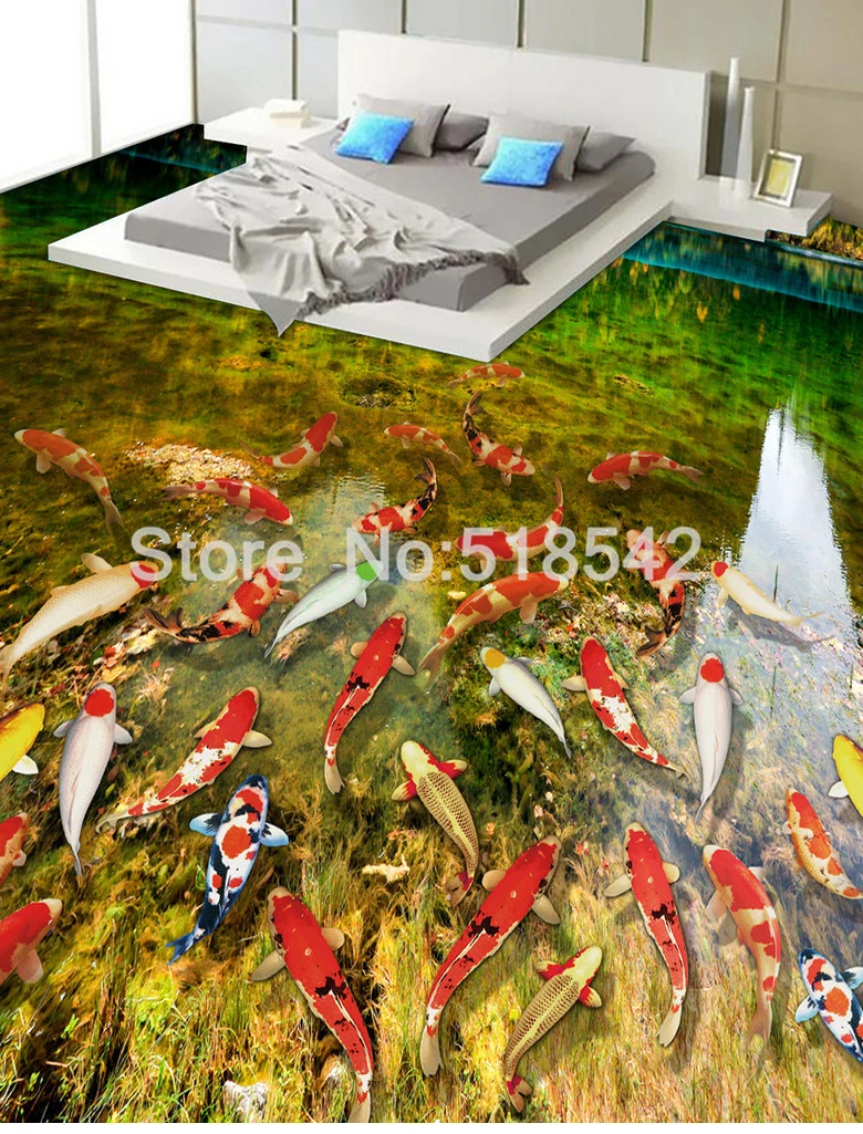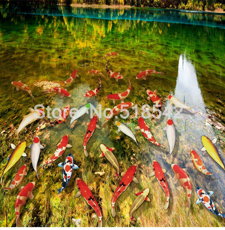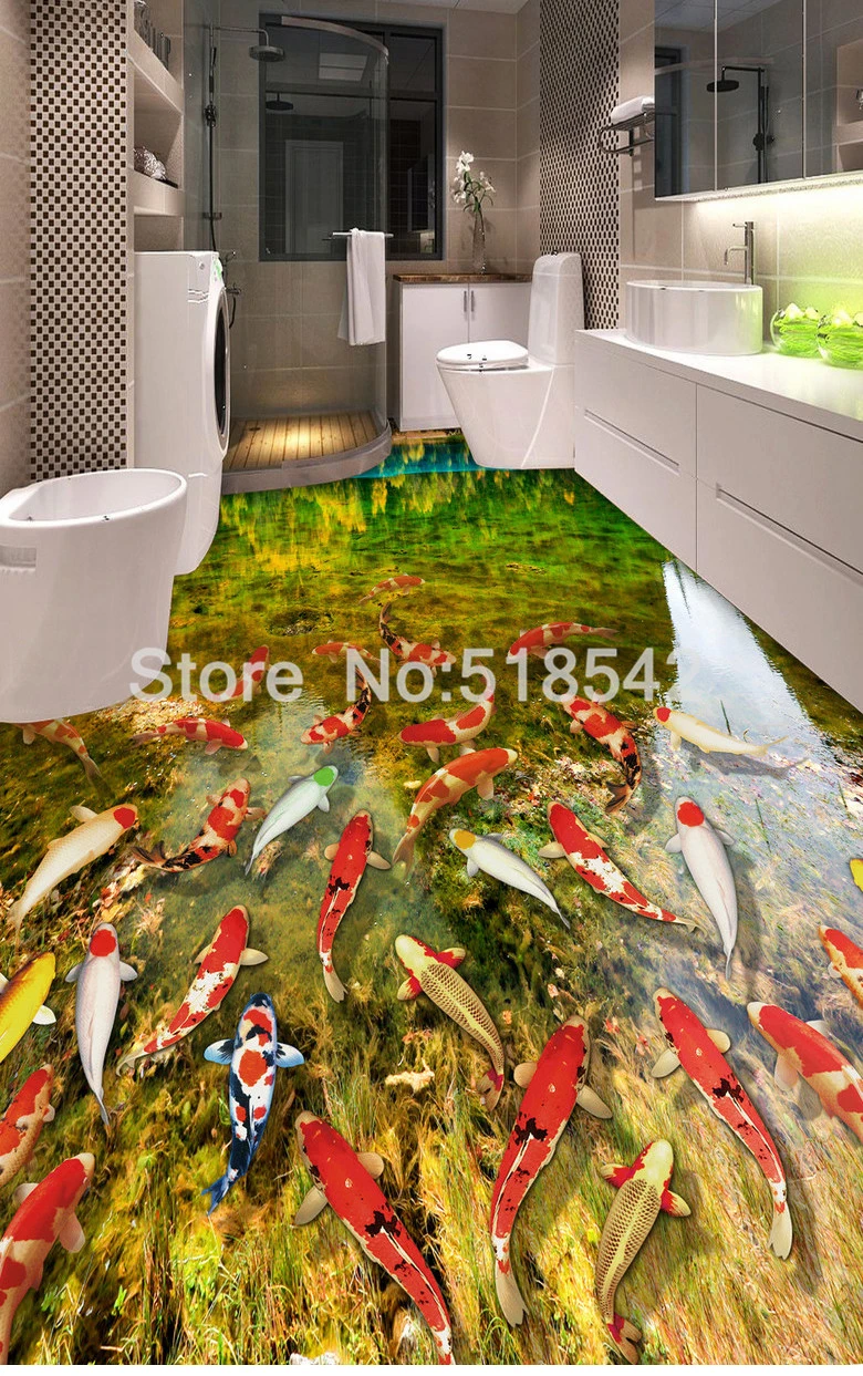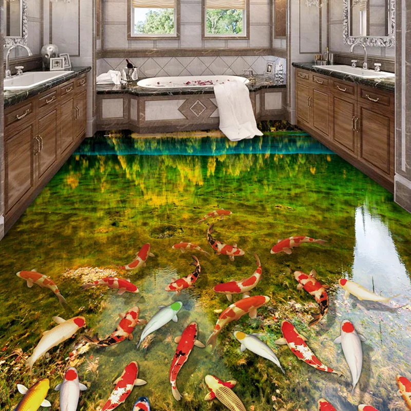 Высокое качество пользовательские 3D Пол обои пруд Карп Туалеты Ван...