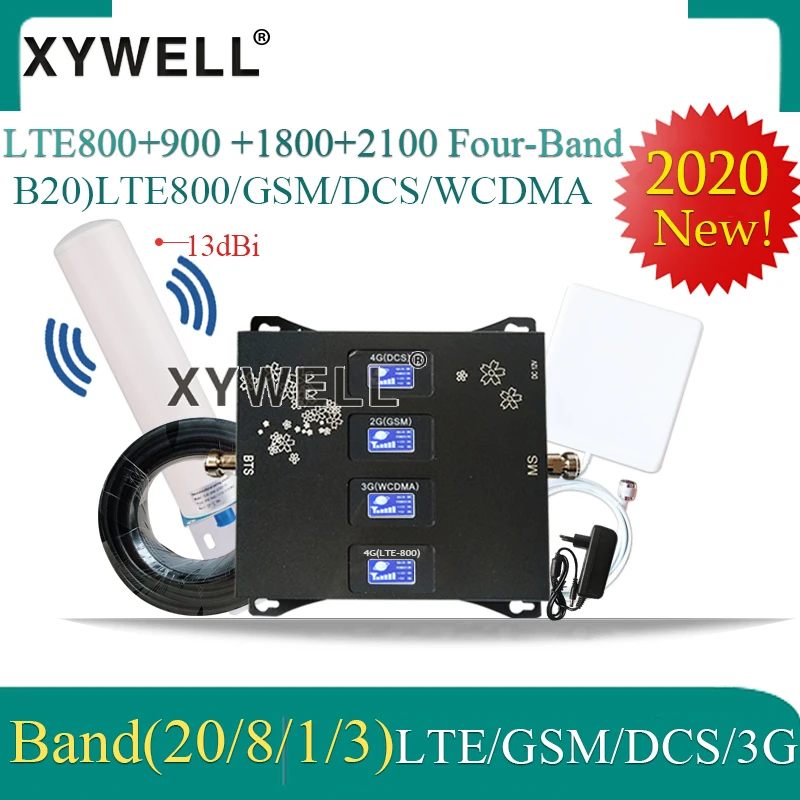 2020 Новинка! Четырехдиапазонный усилитель сотовой связи B20 800 900 1800 2100 МГц, ретранслятор gsm 2g 3g 4g, усилитель мобильного сигнала LTE GSM WCDMA DCS