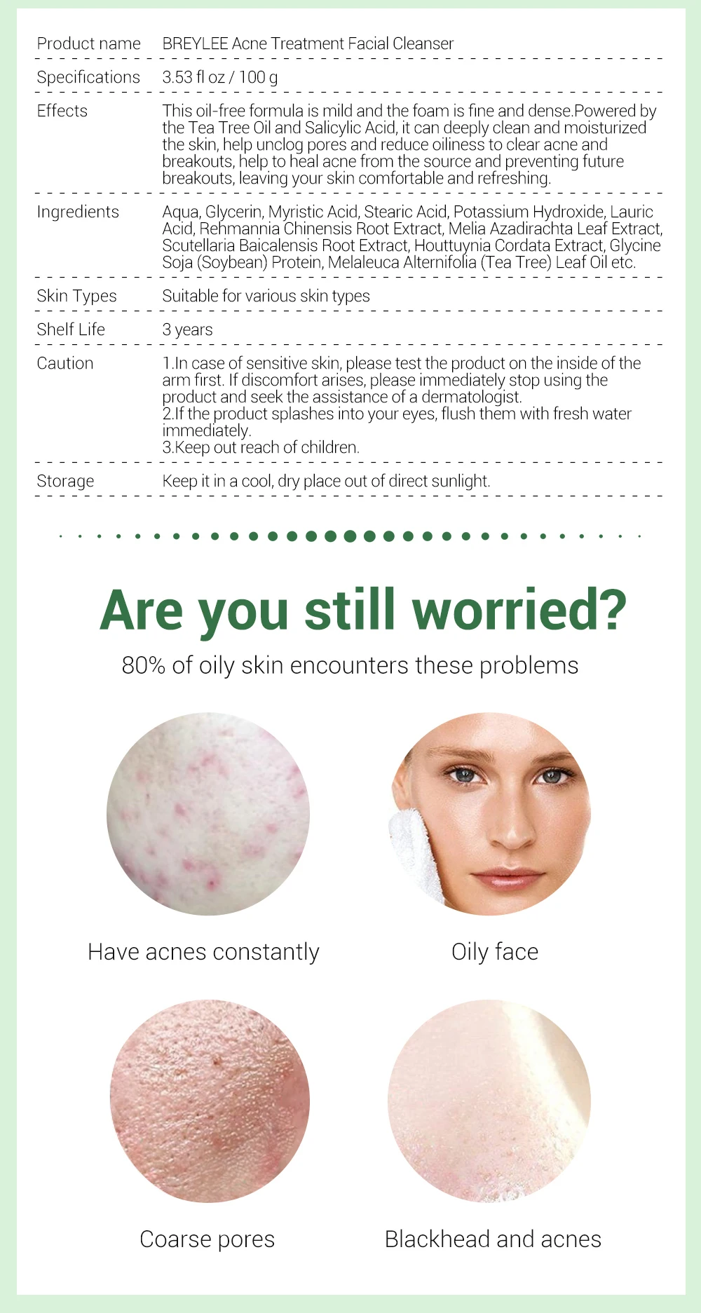 Удаление акне через чайное дерево Деликатная стирка и защита от акне Очищающее средство для лица для лечения акне BREYLEE