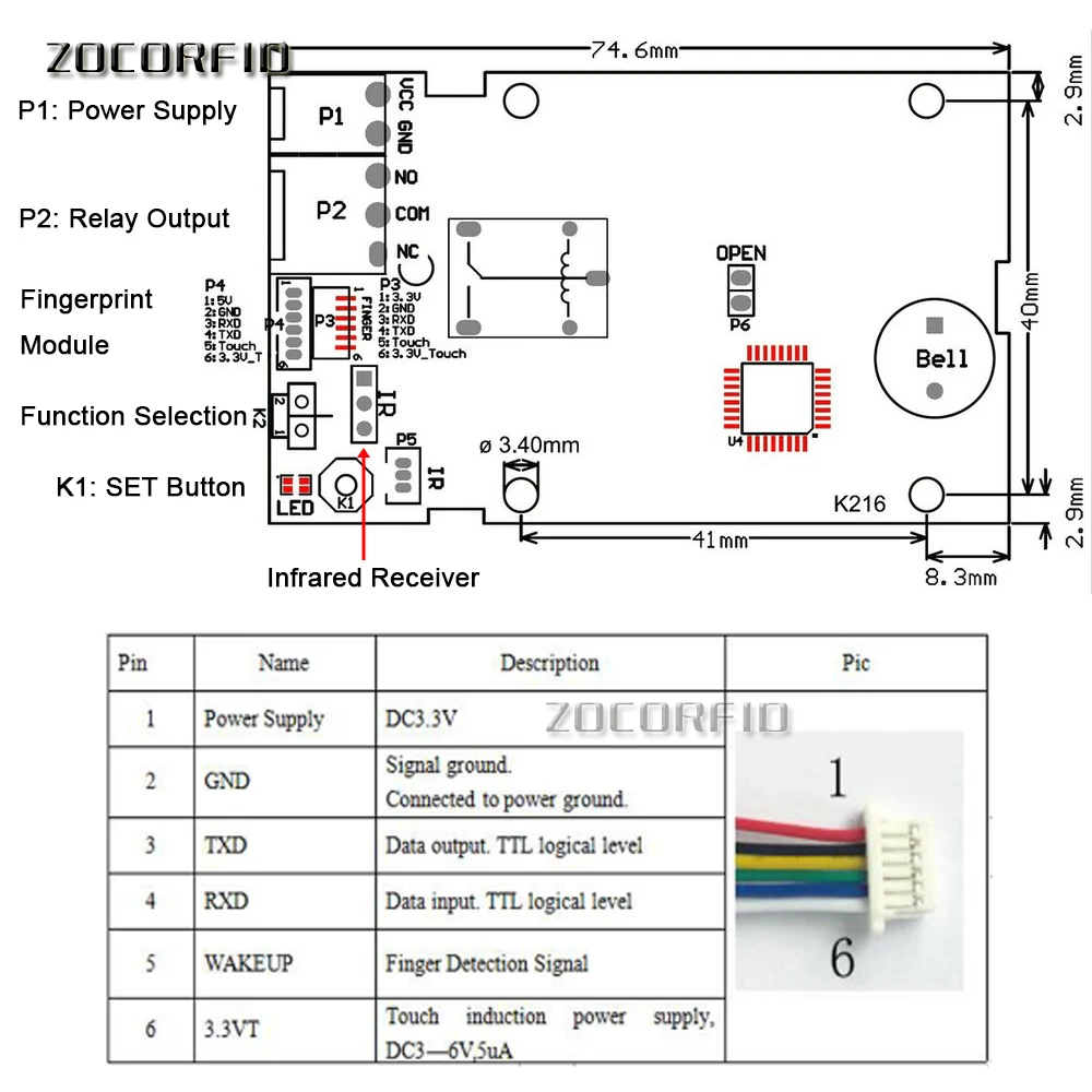Отпечаток пальца может быть зарегистрирован непрерывно, когда система находится в состоянии регистрации; Если нет необходимости добавлять отпечаток пальца больше, ожидание 8 секунд. (Емкость отпечатка пальца составляет 100 штук при нажатии кнопки SET, зарегистрированные отпечатки пальцев хранятся в базе данных 01)