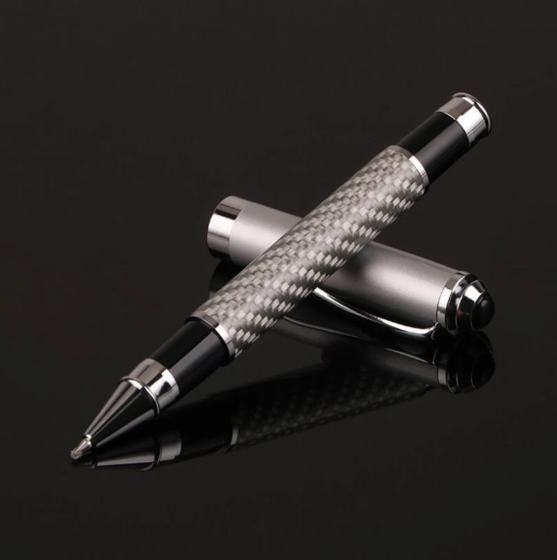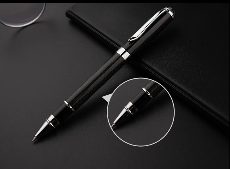Роскошные углеродного волокна Высокое качество записи роллер, шариковая ручка Бизнес Для мужчин цифровым пером купить 2 ручки отправить подарок