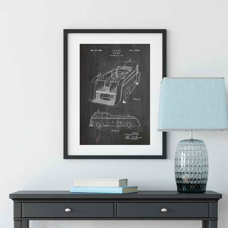 PurposeFirefighter Fire Truck Blueprint Art Painting Home Decoration