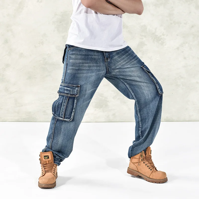 Джинсы мужские свободные со множеством карманов, мешковатые джинсы ...