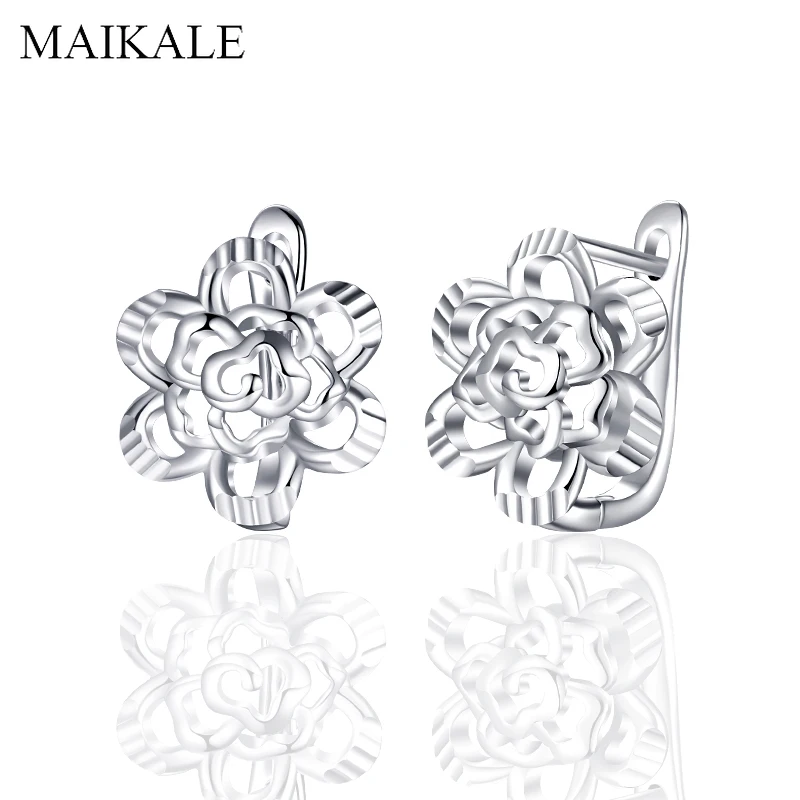 MAIKALE Новая мода с отверстиями на верхнем слое и с цветами медные серьги ювелирные изделия гладкая полоса серьги-гвоздики для женщин ювелирные изделия простой Лидер продаж подарок Brincos