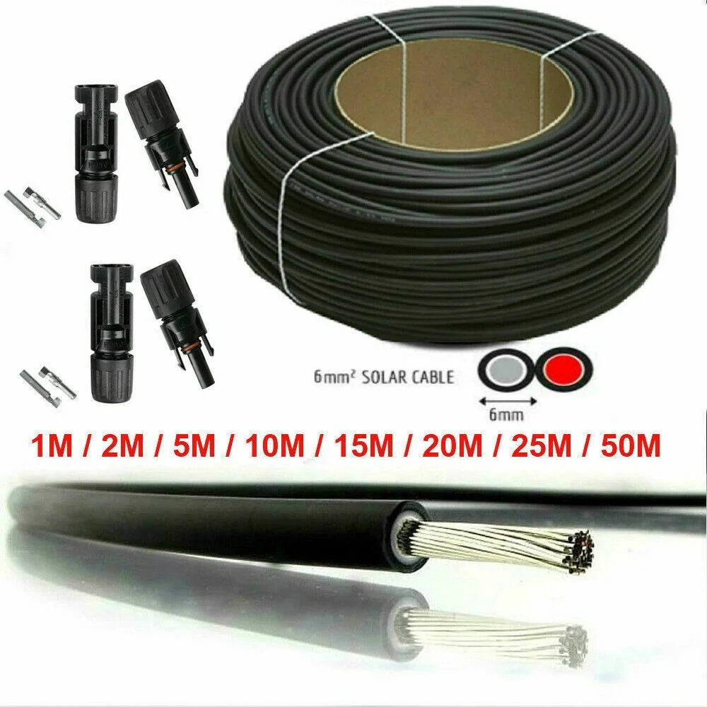 Солнечный кабель 5M10M Красный Черный панели солнечных батарей Фотоэлектрические кабели DC 4mm 6mm Двойной Изолированный с опционным 2PCS PV разъем