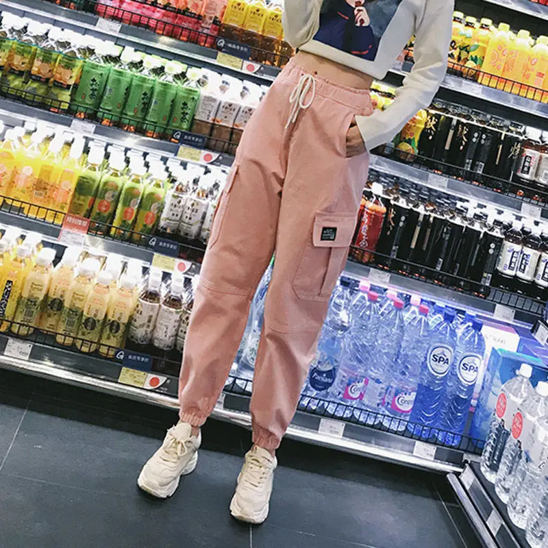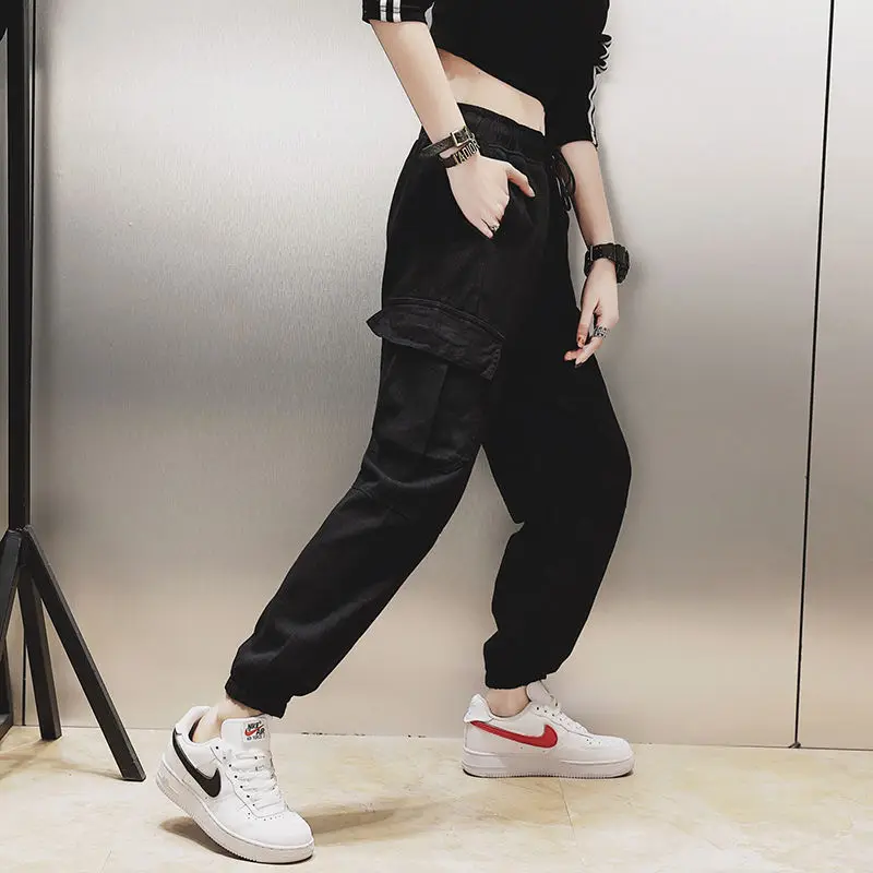 Брюки женские хлопковые, до щиколотки, свободные, с высокой талией, в стиле хип-хоп, 2020