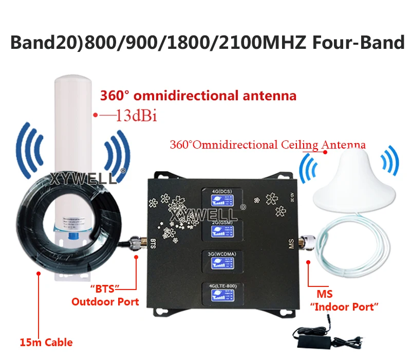Лидер продаж 2020 Четырехдиапазонный усилитель сотовой связи B20, 800, 900, 1800, 2100 МГц, ретранслятор gsm 2g, 3g, 4g, Усилитель мобильного сигнала LTE, GSM, WCDMA, DCS