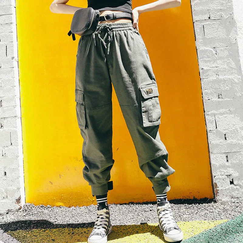 Брюки-карго женские, с большими карманами, на липучке, эластичные, с высокой талией, свободные, в уличном стиле, 2020