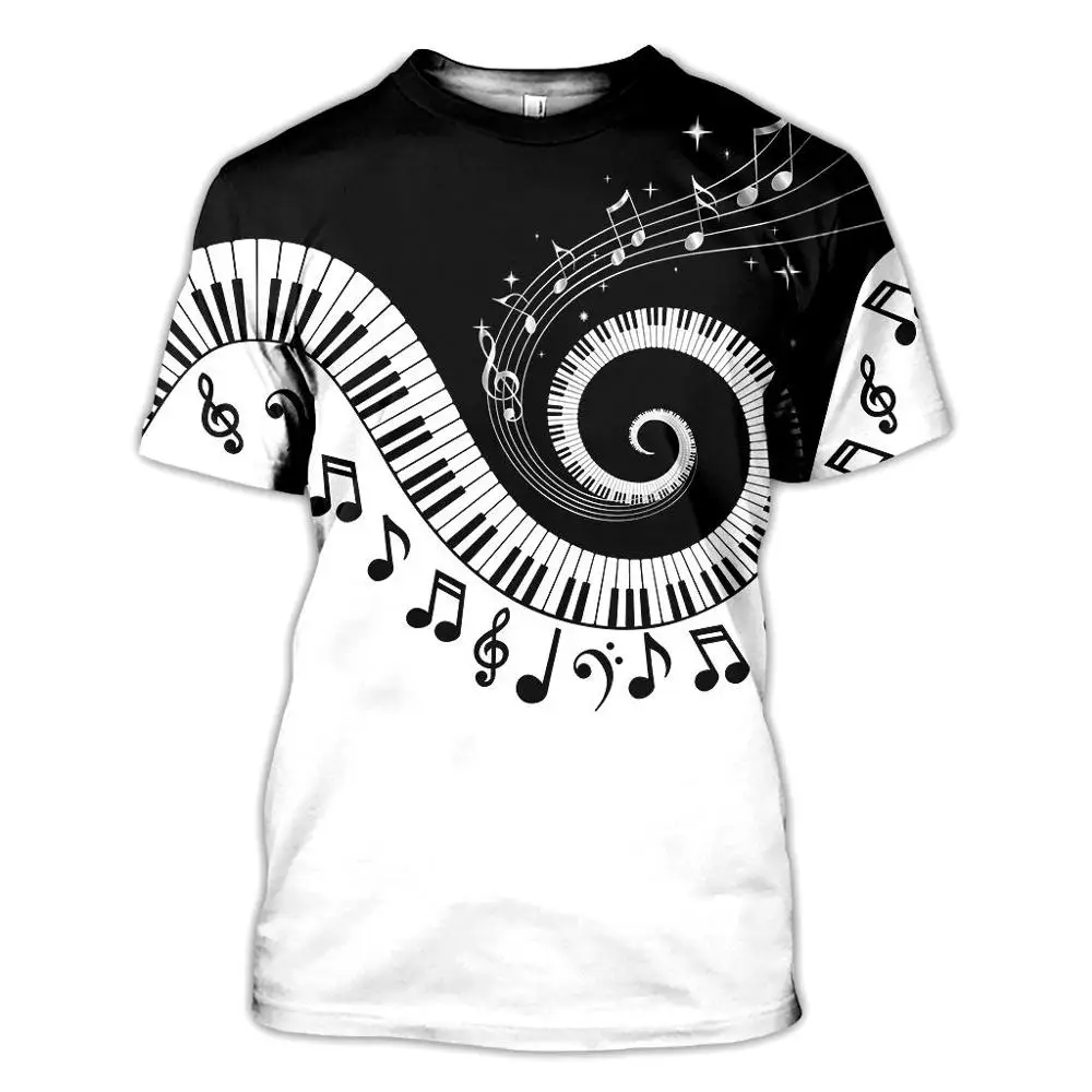 Футболка PLstar Cosmos с принтом фортепиано, Музыка 3d, летняя, забавная, в стиле Харадзюку, с коротким рукавом, с музыкальным инструментом, streetwear-1