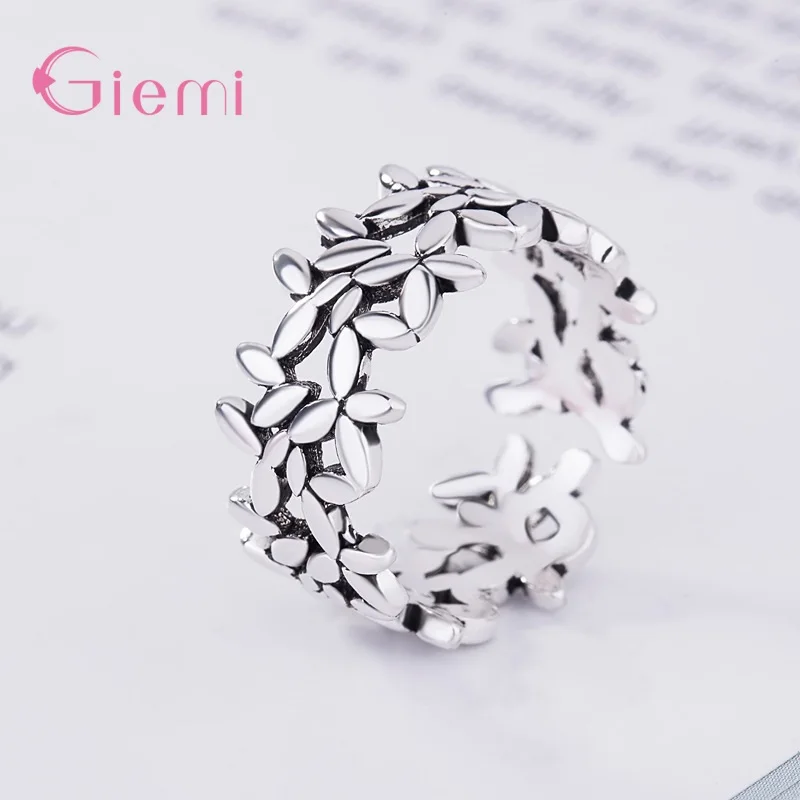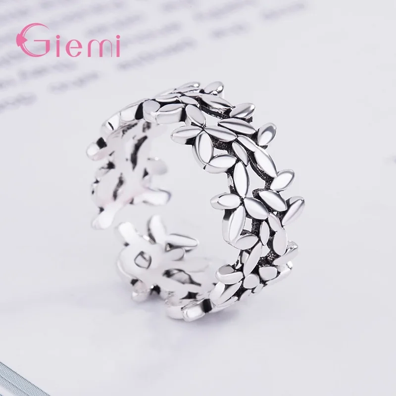 Женское Винтажное кольцо в богемном стиле, регулируемое кольцо с листьями из стерлингового серебра 925 пробы, бижутерия, хороший подарок для девушек