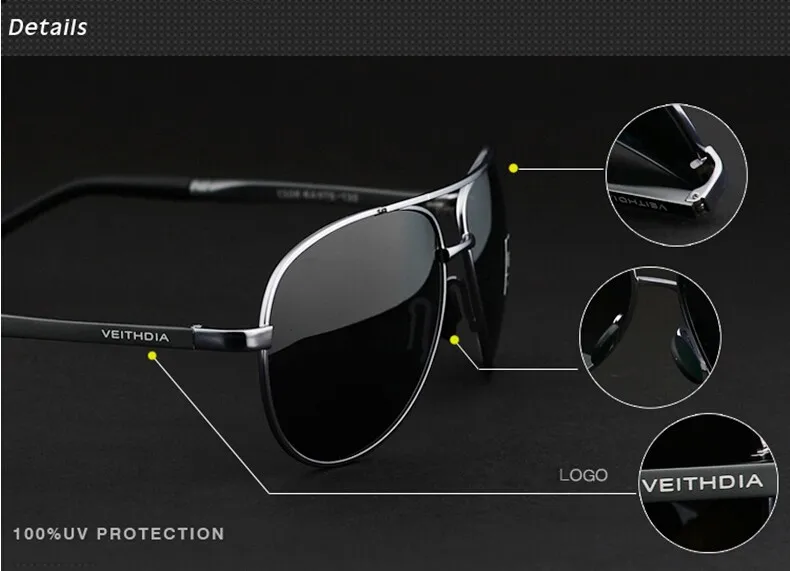 Солнцезащитные очки VEITHDIA, алюминиевые мужские поляризованные UV...
