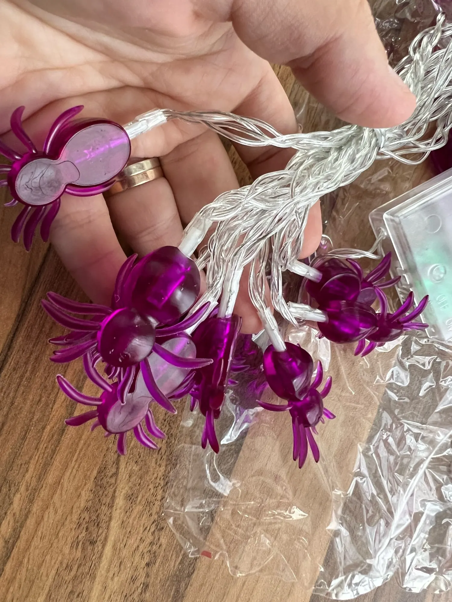 Лампочки хорошие, пауки крупные около 4см они силиконовые надеты на лампочки, при желании легко можно снять и надеть на другую гирлянду. Светятся ярко красивые брала к Хэлуин позже добавлю фото. Продавец хороший .