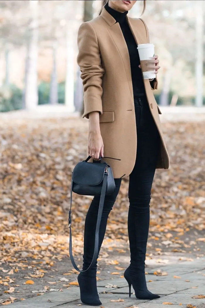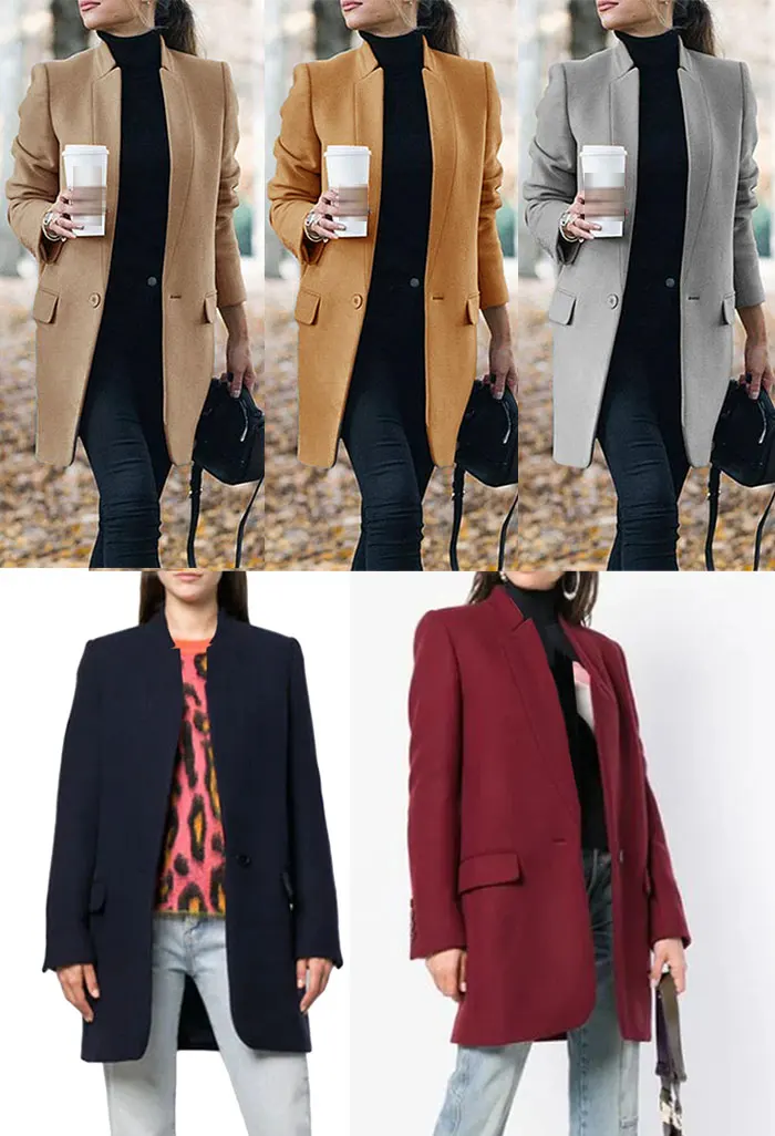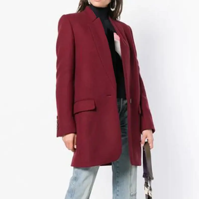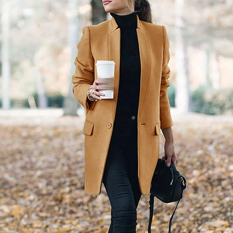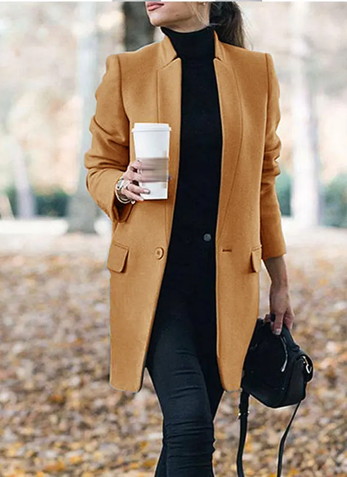 Женское шерстяное пальто с воротником-стойкой, однотонное приталенное пальто с длинным рукавом, верхняя одежда для офиса, Осень-зима 2022