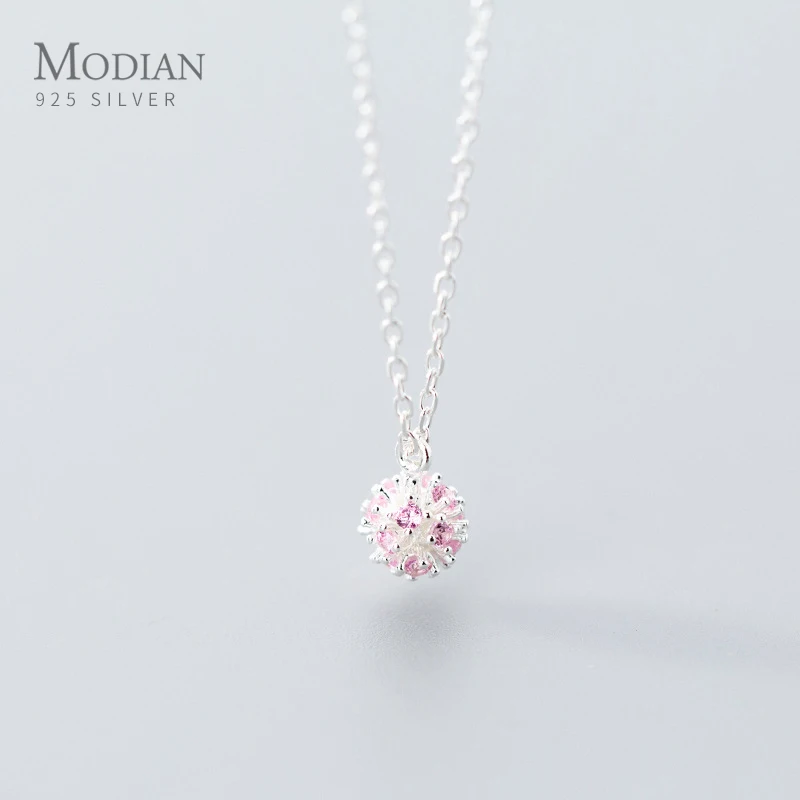 Женская цепочка Modian, ожерелье из серебра 925 пробы с круглым розовым кубическим цирконием, Ювелирное Украшение с жемчугом