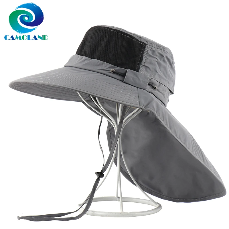 Осенняя Солнцезащитная шляпа CAMOLAND, Мужская Панама для походов UPF 50 +, уличные рыболовные кепки с длинными широкими полями и воротником, шляпы