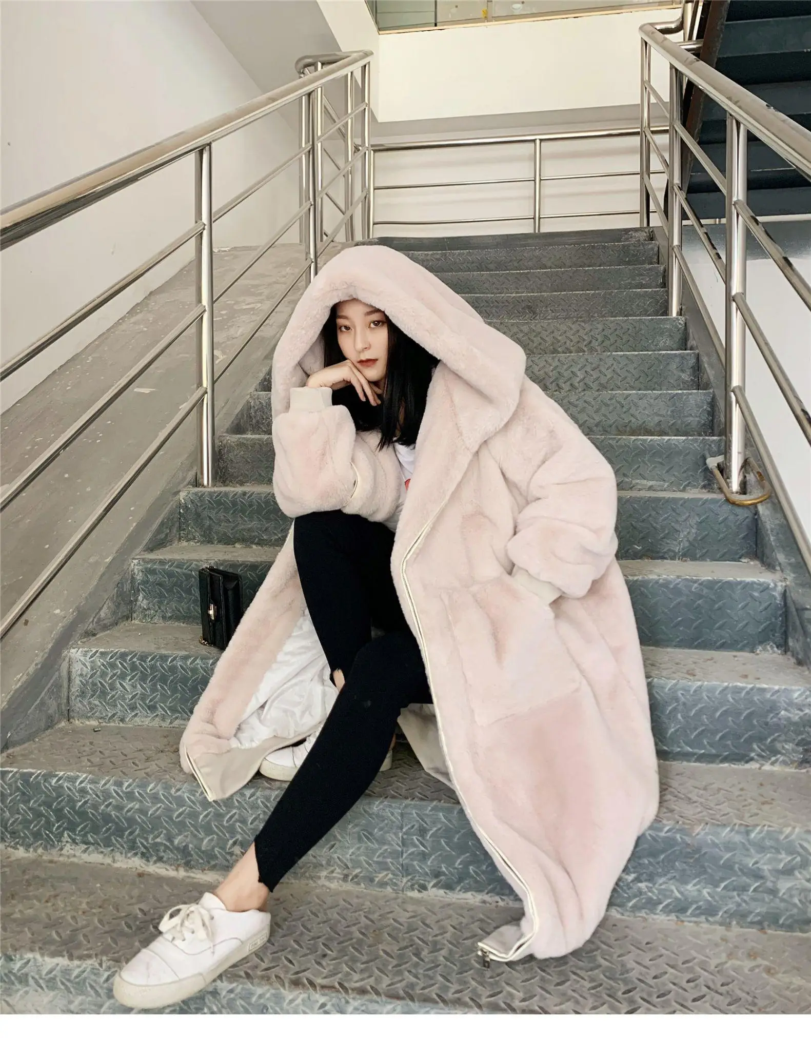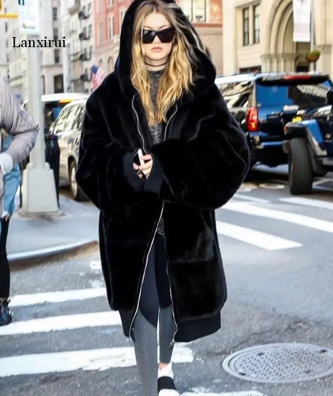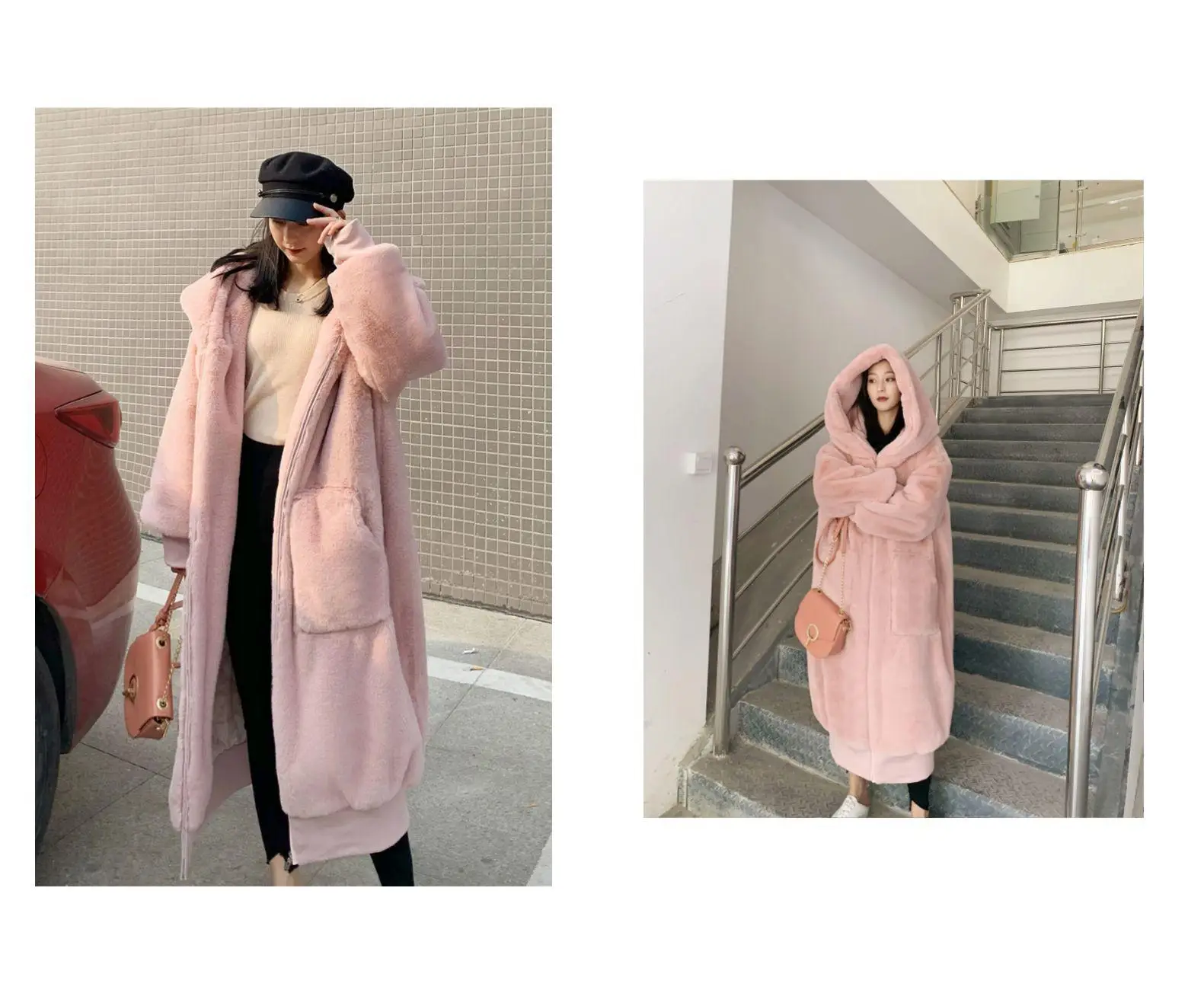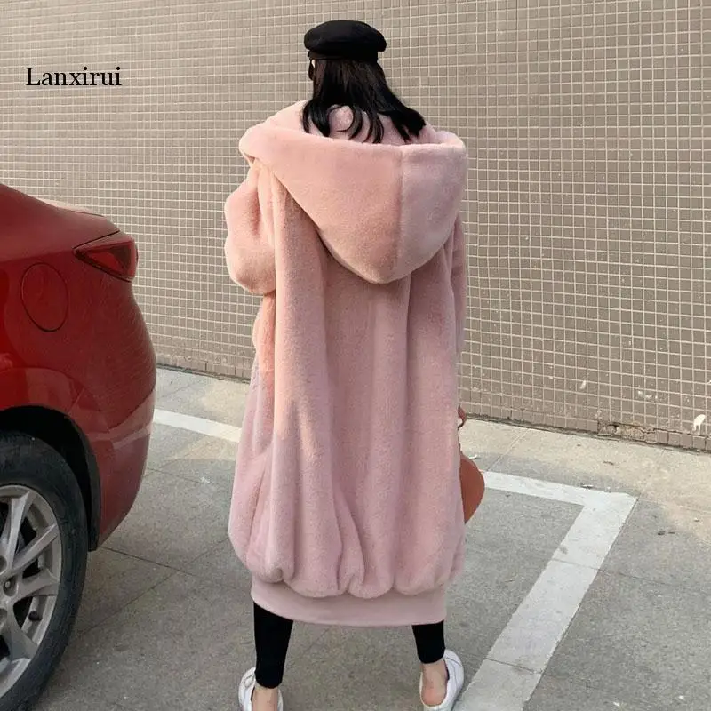 Толстовки высокого качества, длинное розовое пальто из искусственного меха, размер d, утолщенное элегантное женское зимнее пальто из кроличьего меха, женское плюшевое пальто стандартного размера