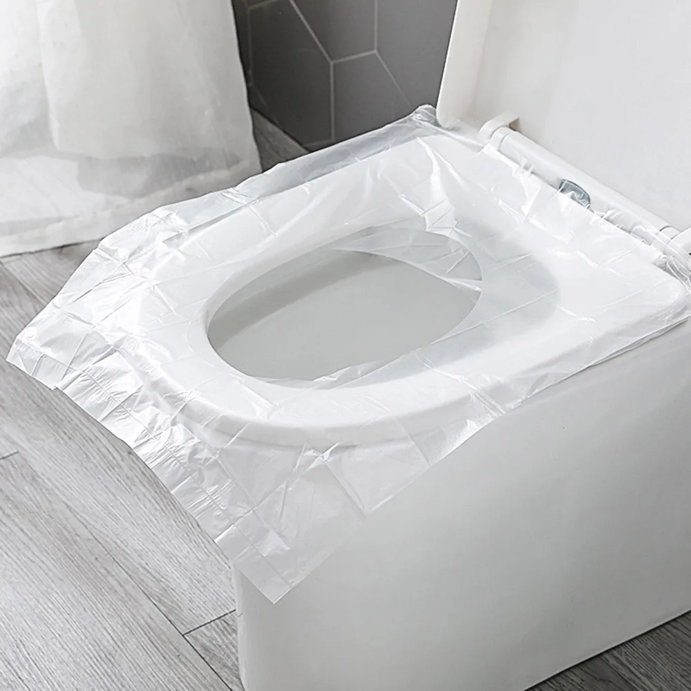 полиэтилен. В унитаз бросать нельзя. неудобно что надо снимать и комкать чтоб выбросить. не такие широкие как на картинке. когда садишся съезжают и часть тела может соприкасаться с унитазом.
