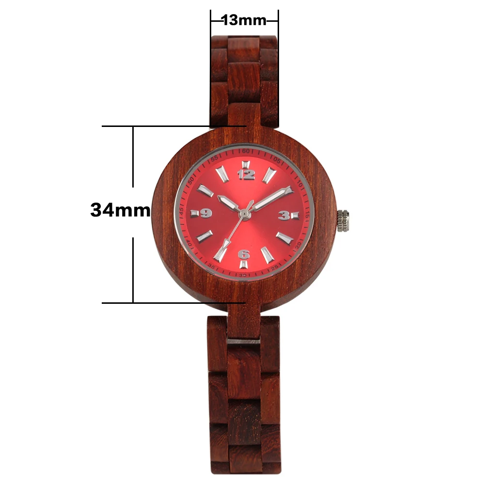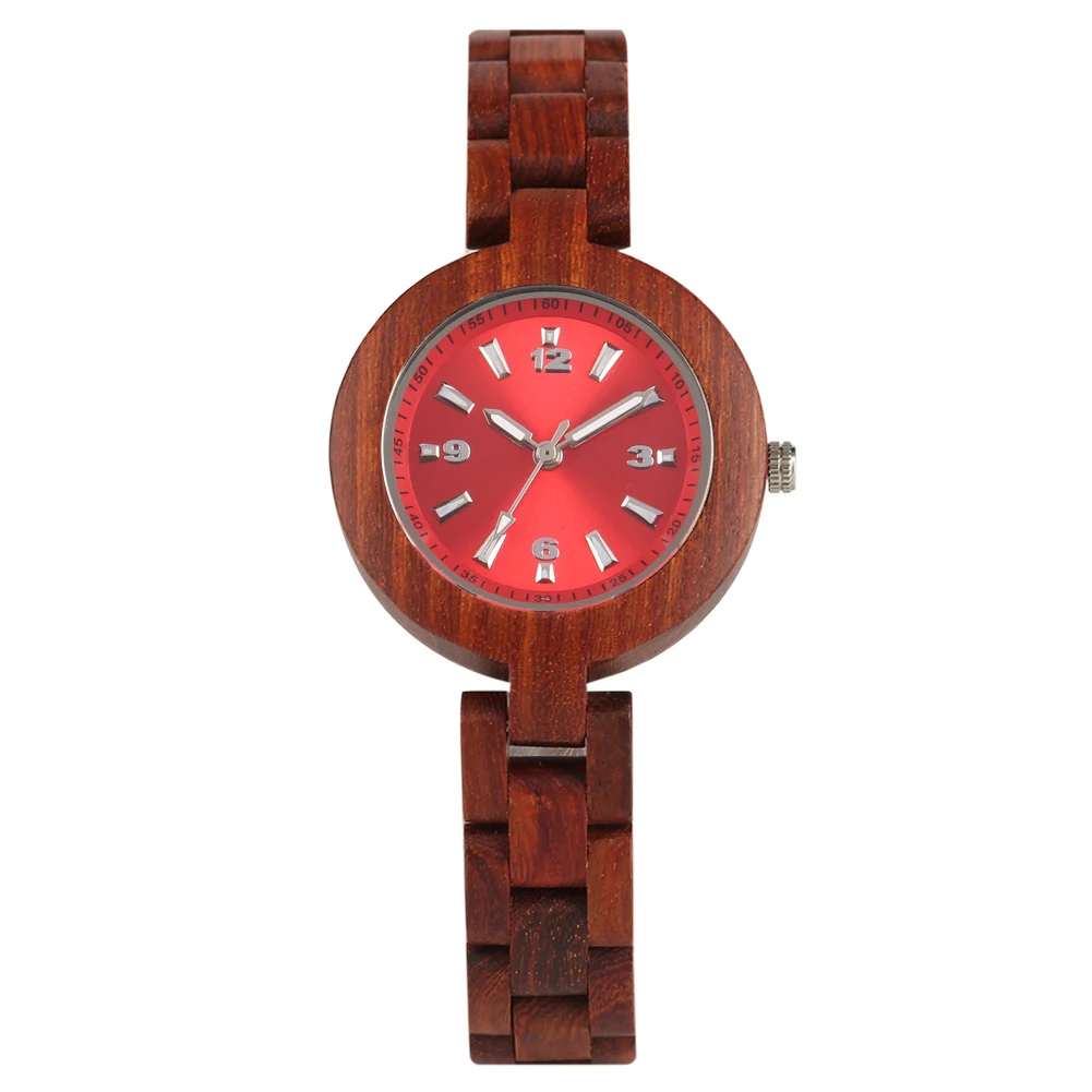 Женские часы красного и коричневого цвета, полностью деревянные элегантные женские наручные часы с маленьким циферблатом, роскошные Брендовые Часы с деревянным ремешком, подарок