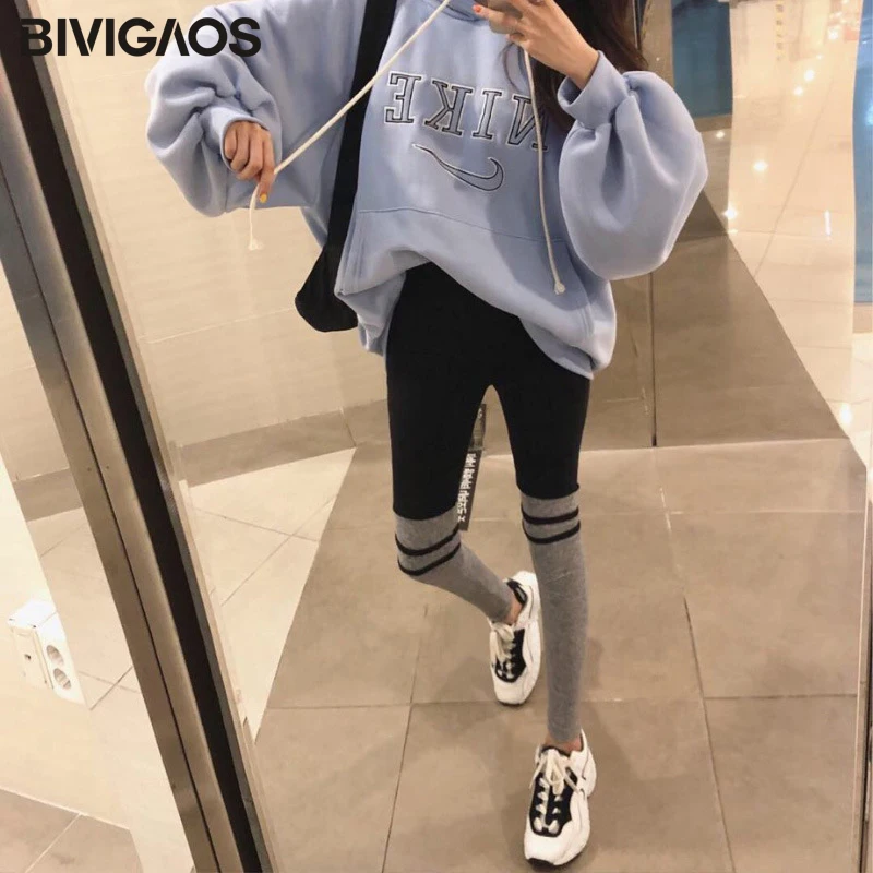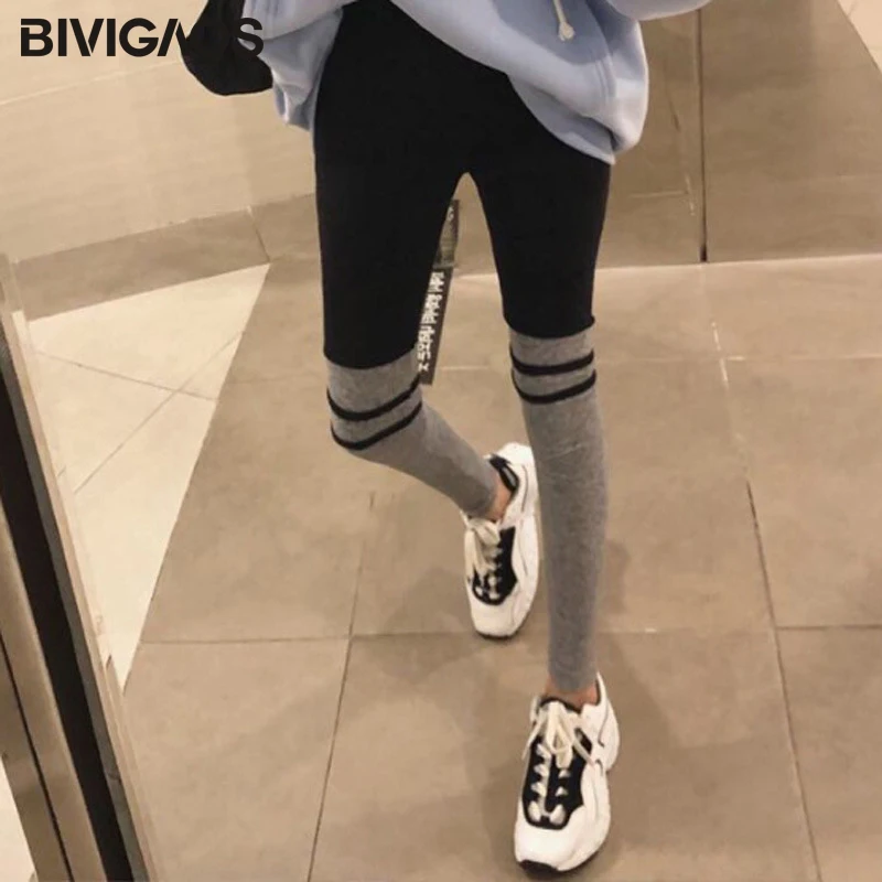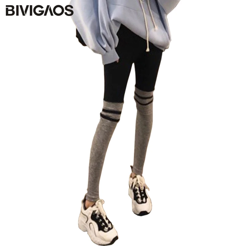 BIVIGAOS Весенние новые женские корейские хлопковые леггинсы для тренировок хитовые цветные повседневные спортивные Леггинсы с двойной полоской для фитнеса штаны женские